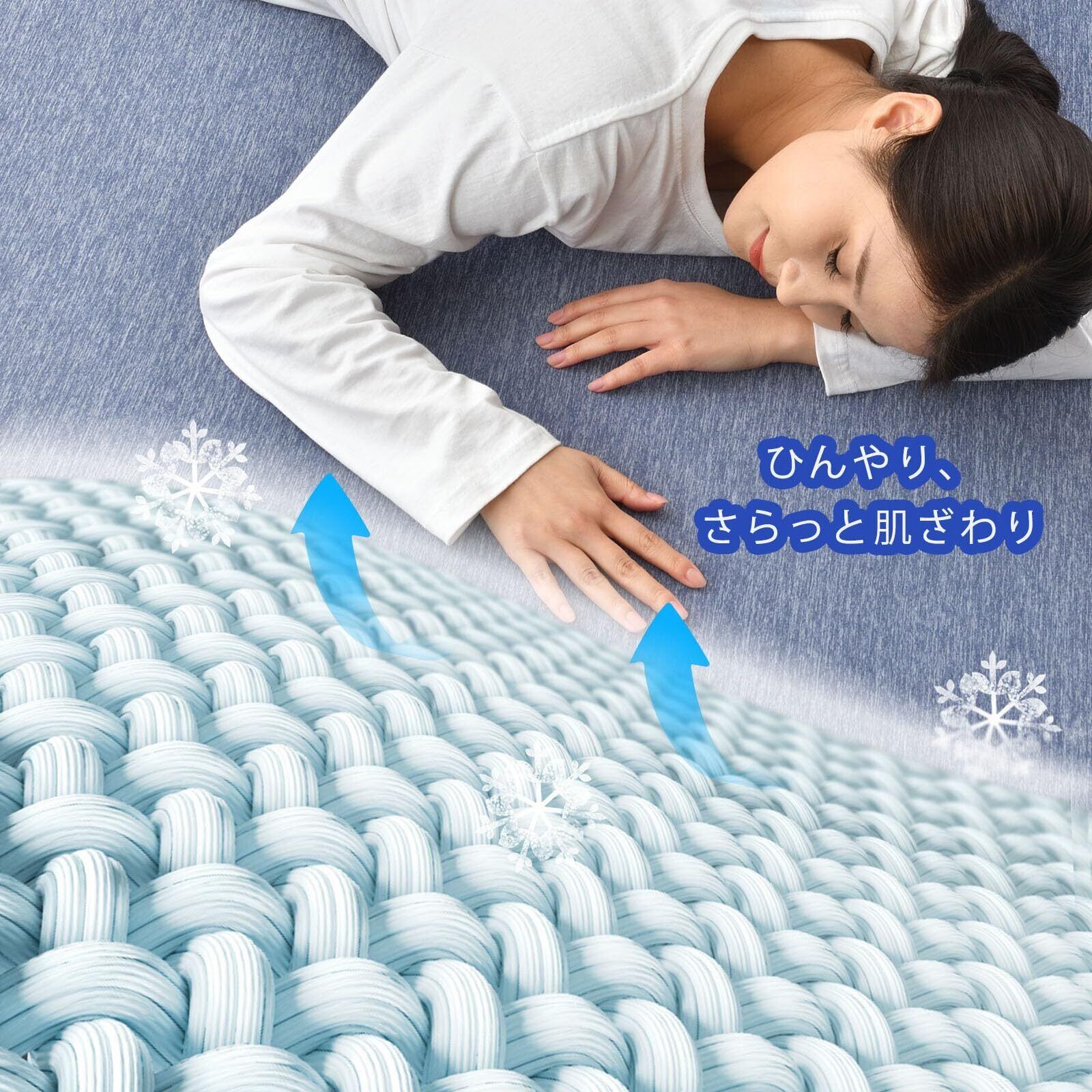 【接触冷感ラグ】この夏用ラグマット2畳は冷却値が0.36、肌に触れるとひんやり、優れた放熱性で、夏場にかかってしまい過ぎるクーラーなどの電気代を抑えてくれる効果も期待できます