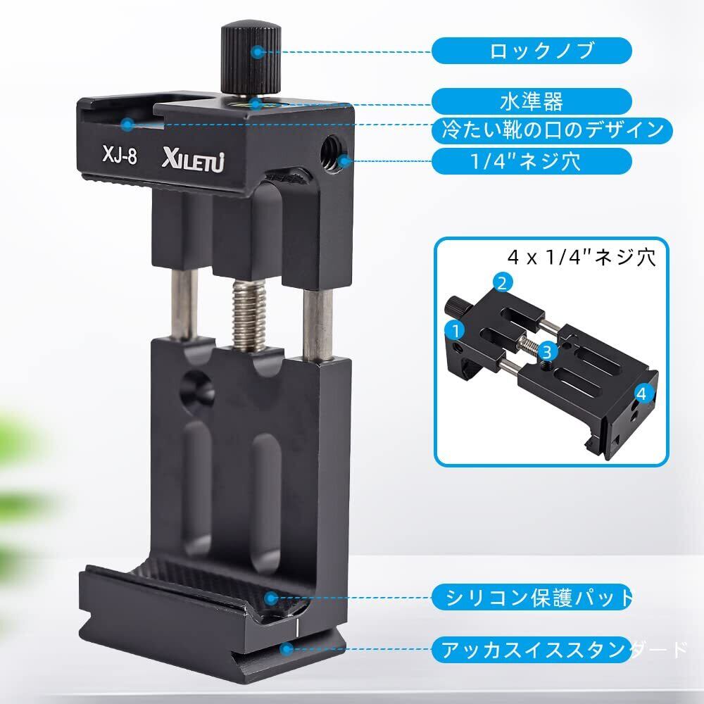 【在庫処分】XILETU スマートフォン三脚ホルダー コールドシュー付き 1/4 ネジ穴 iPhone/Android/三脚/自撮り棒用 金属製電話ホルダーアダプター (黒)