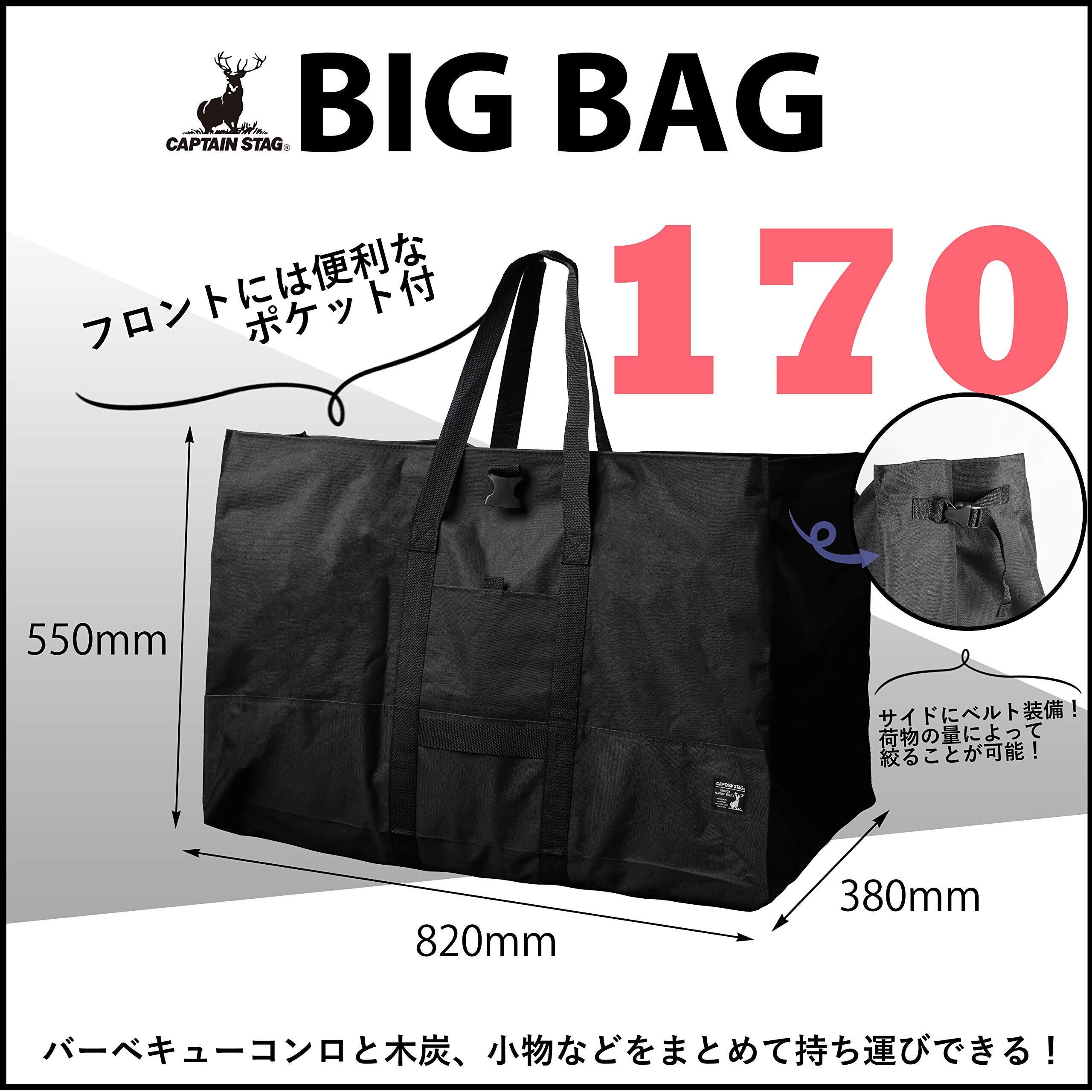 【 限定】キャプテンスタッグ(CAPTAIN STAG) 大型収納 トートバッグ ビッグバッグ 収納ケース付き ブラック UE-599/UE-600/UE-601