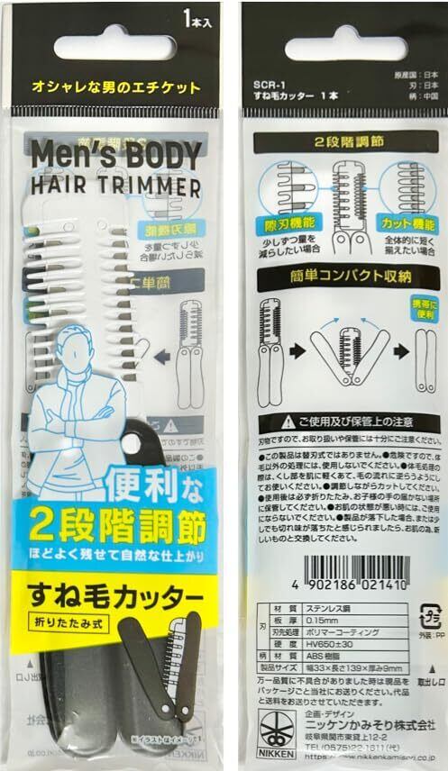 【2セット】 ニッケンかみそり (株) すね毛 カッター 便利な2段階調節 1袋(1本入り) すね毛用カミソリ すね毛すき すねげトリマー すね毛剃り すねげ処理 ボディヘアトリマー 4902186021410