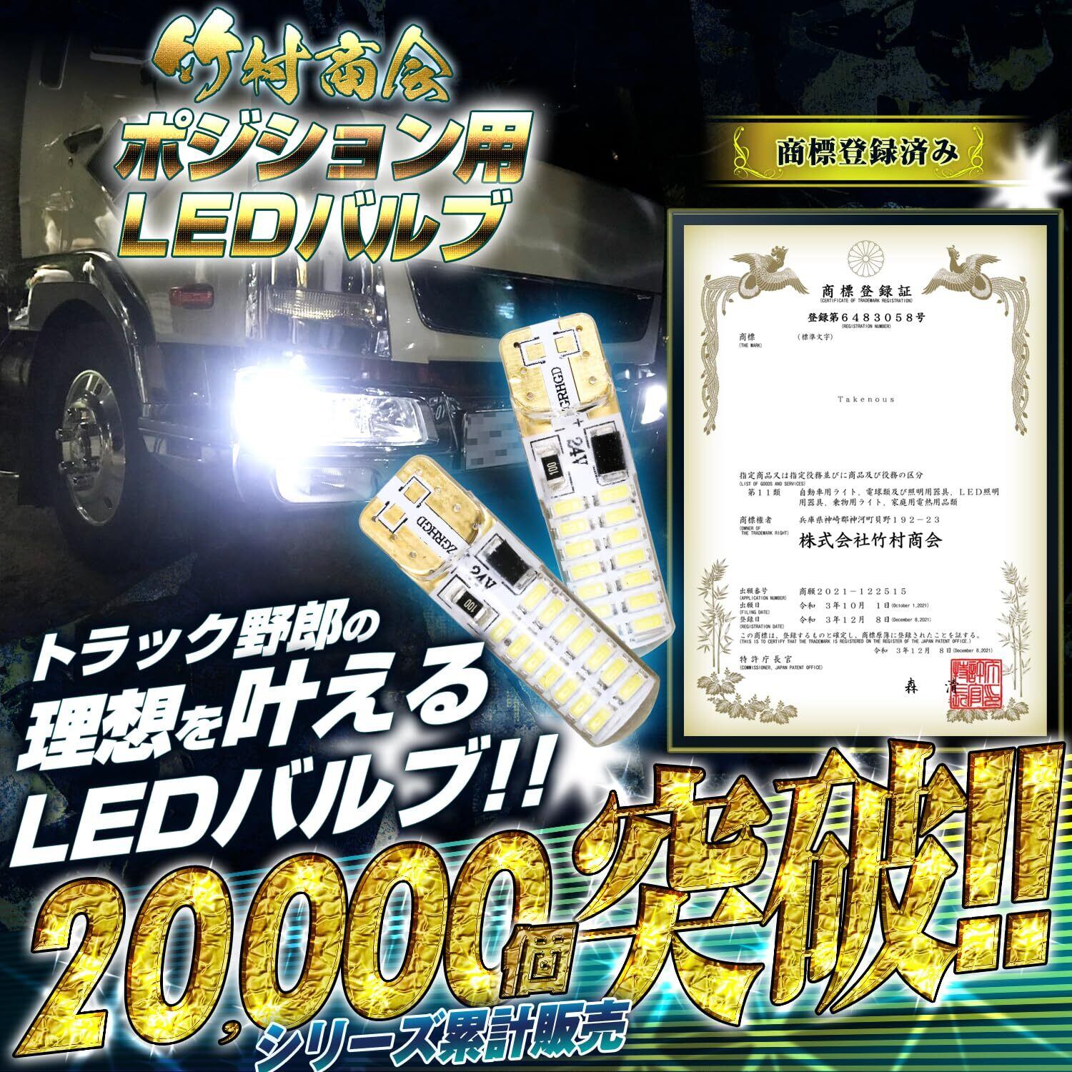 Takenous トラック野郎御用達 竹村商会 led t10 ポジション球 ポジションランプ 24v t10 ポジション 爆光 左右セット (グリーン)