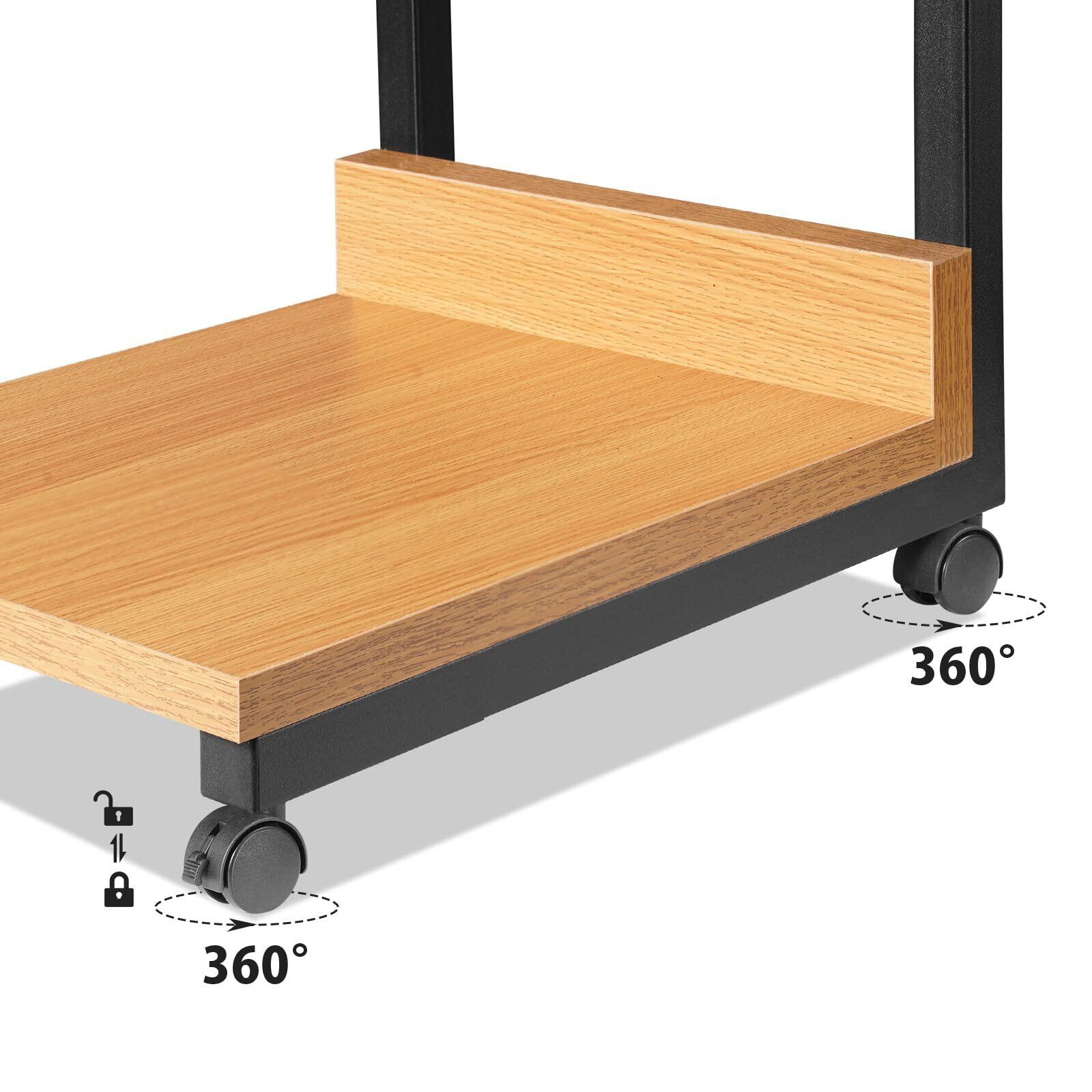 YeTom サイドテーブル キャスター付き ベッドサイドテーブル 可移動ベッドテーブル サイドワゴン コの字 テーブル 層幅37×奥行26×高さ53cm(キャスター付き)ナチュラル