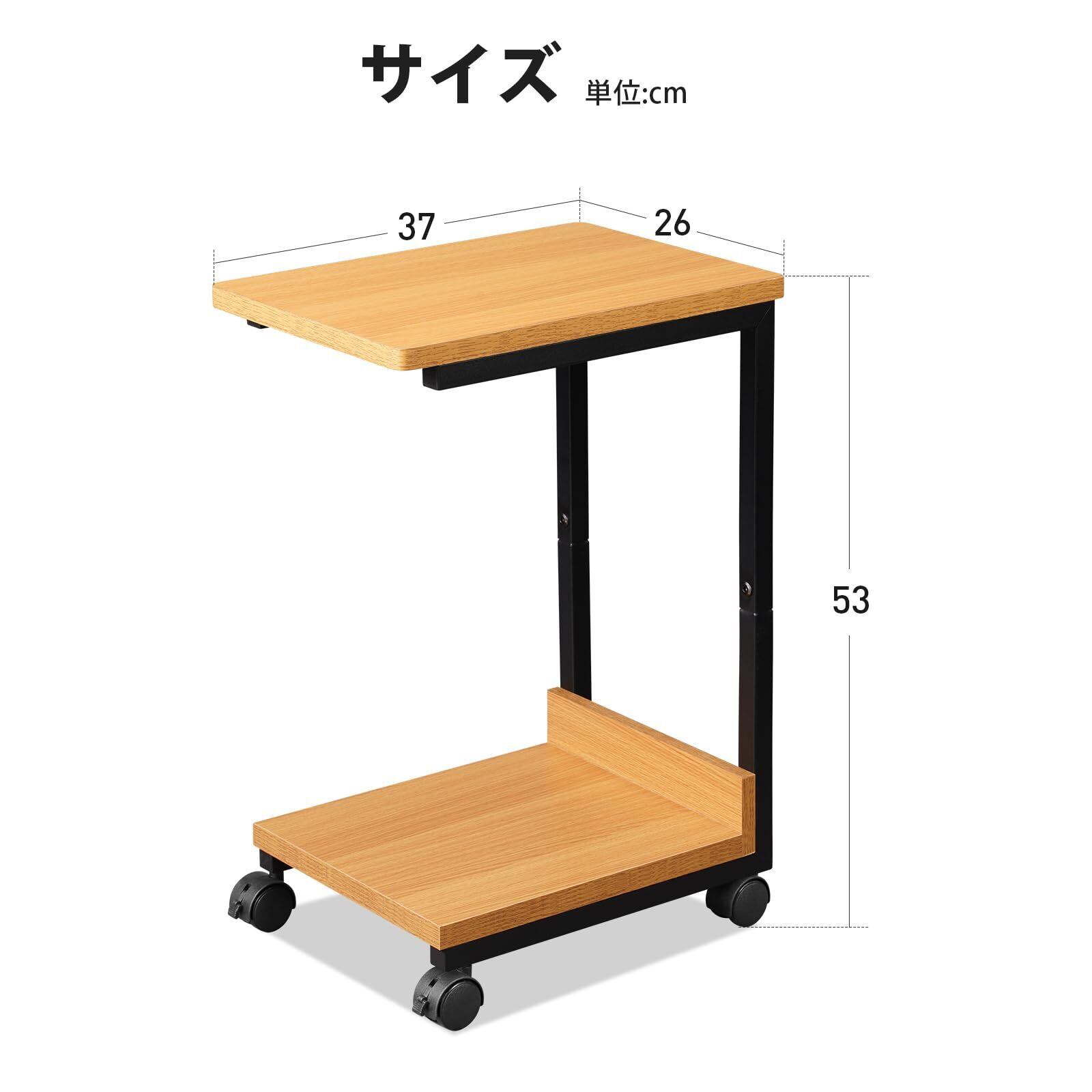 【在庫処分】YeTom サイドテーブル キャスター付き ベッドサイドテーブル 可移動ベッドテーブル サイドワゴン コの字 テーブル 層幅37×奥行26×高さ53cm(キャスター付き)ナチュラル