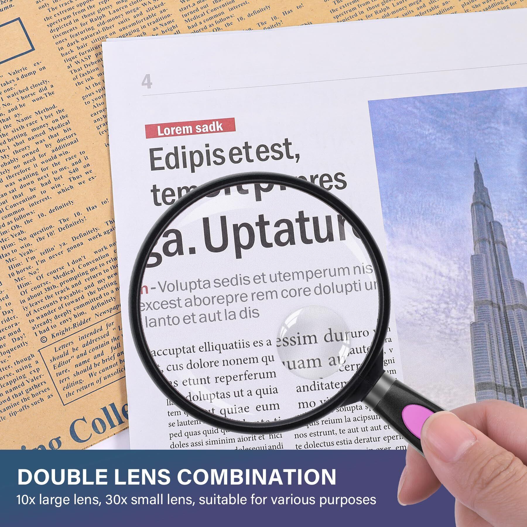 拡大鏡 10倍と30倍 手持ち ルーペ 大きく 見やすい 軽い シンプル 直径75mmで読み物に便利なサイズ(パープル/ブラック) 0502-Purple