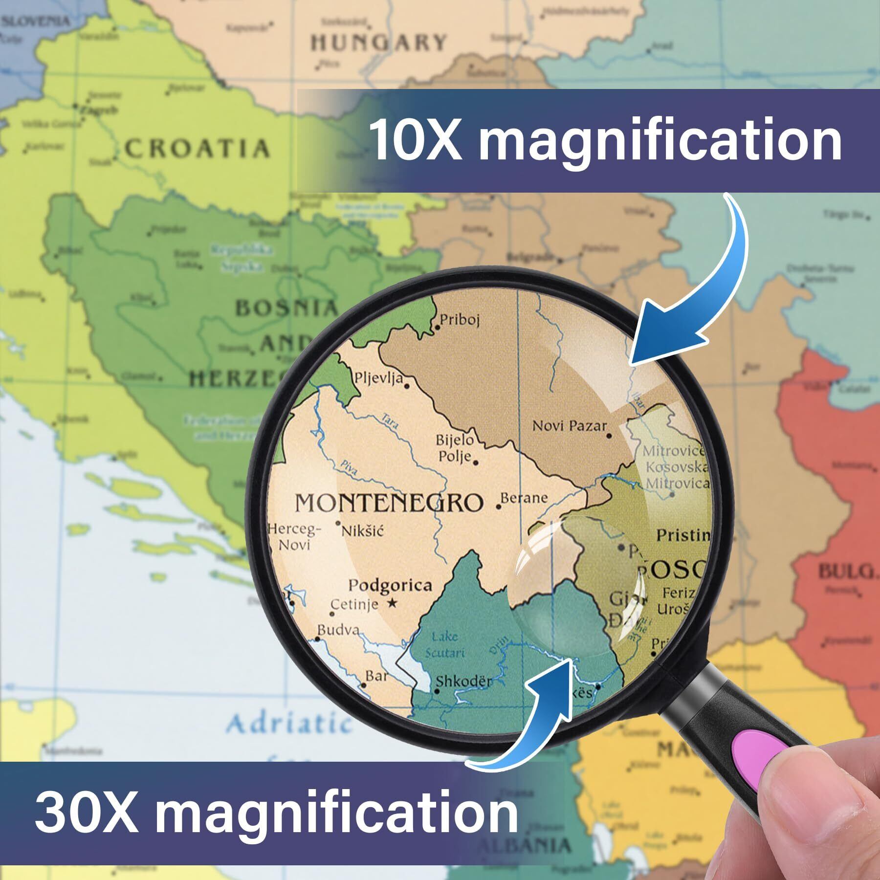 【特価セール】拡大鏡 10倍と30倍 手持ち ルーペ 大きく 見やすい 軽い シンプル 直径75mmで読み物に便利なサイズ(パープル/ブラック) 0502-Purple