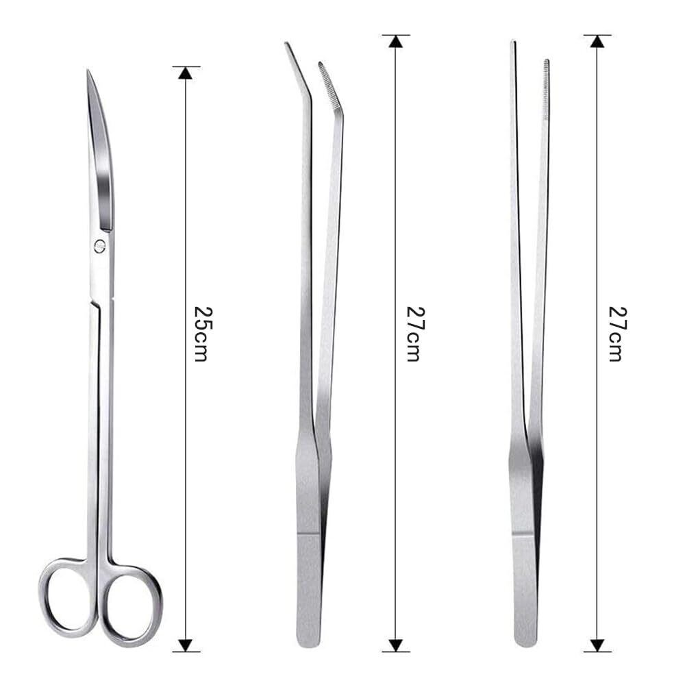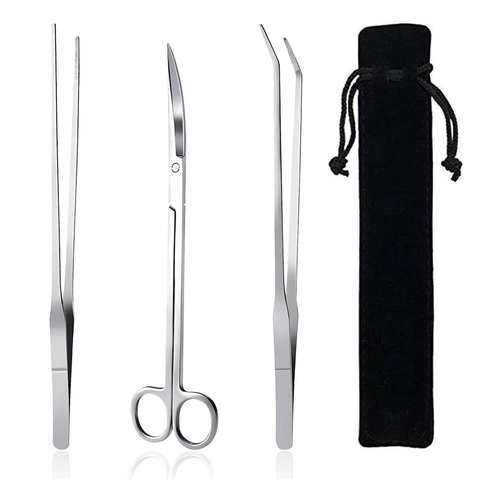 YFFSFDC 水草トリミングセット カーブハサミ ピンセット 3点セット ステンレススチール製 実用 便利 多機能 水槽管理 観葉植物 水草植栽 水族館用 収納バッグ付き