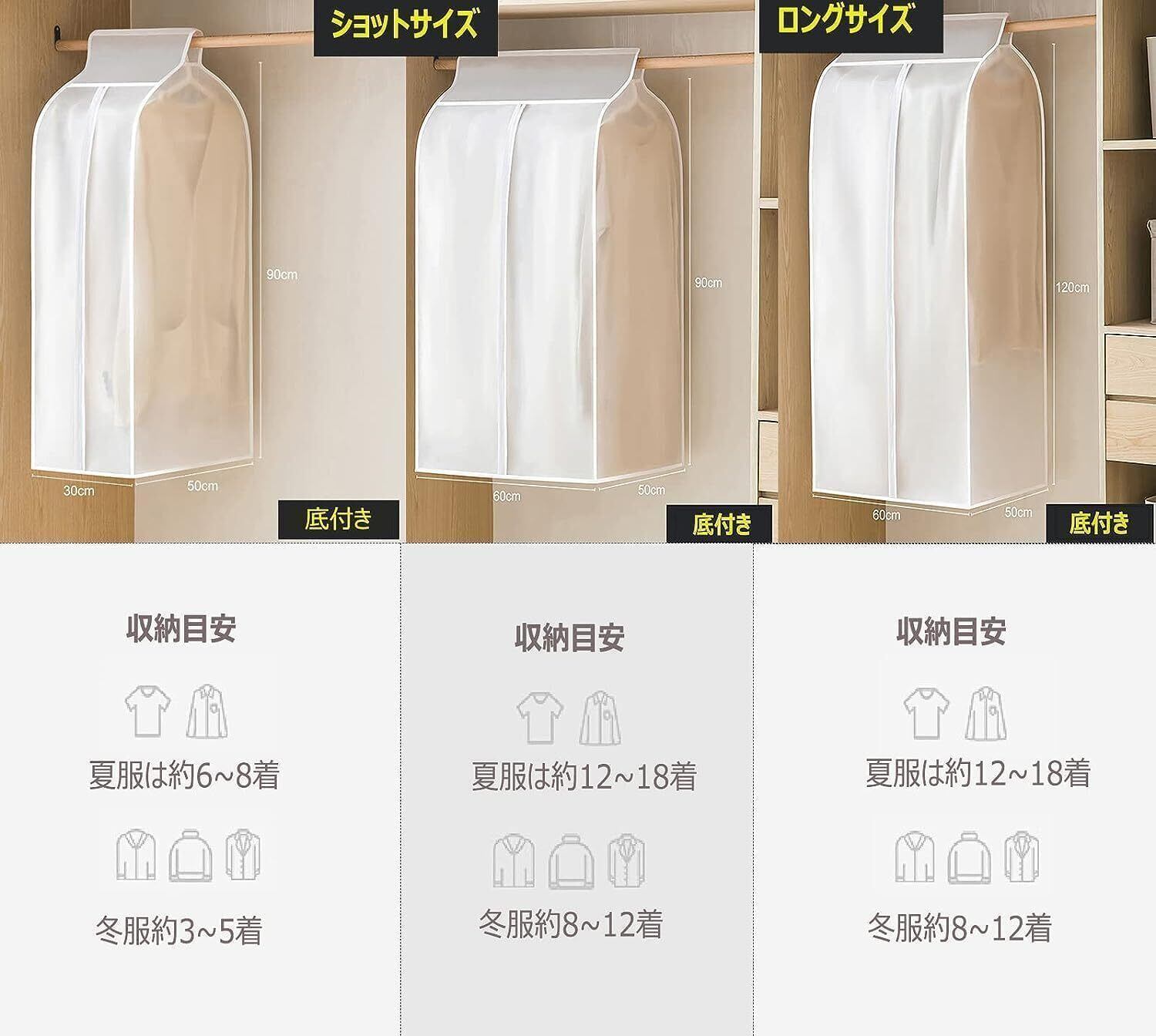 洋服カバーサイズ:ロングサイズ/高さ90×長さ60×幅50CM、高さ120×長さ60×幅50CM、収納目安:衣類10~20枚