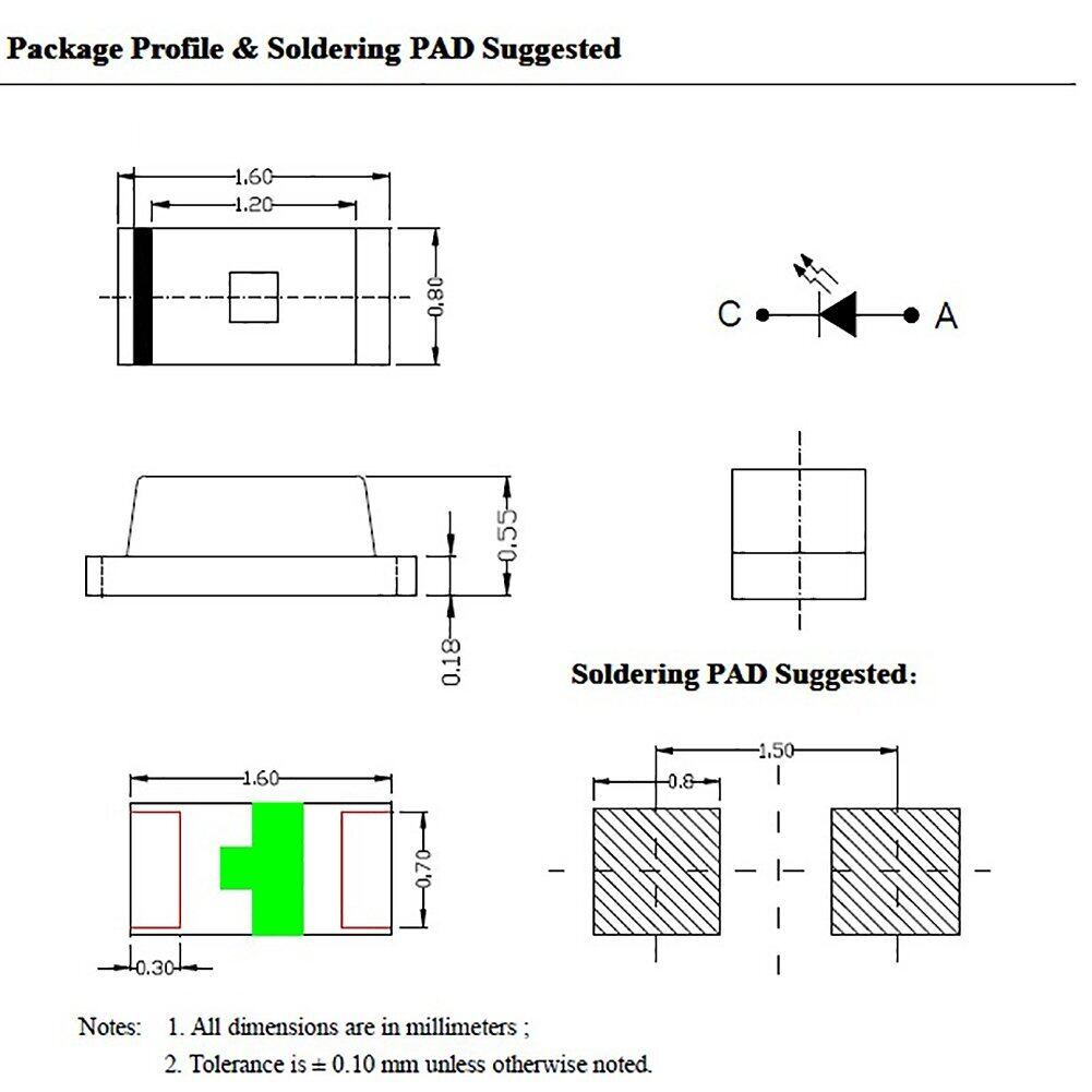 サイズ:SMD Led 0603(1.60x0.80mm),長さは約20cm(L)。
