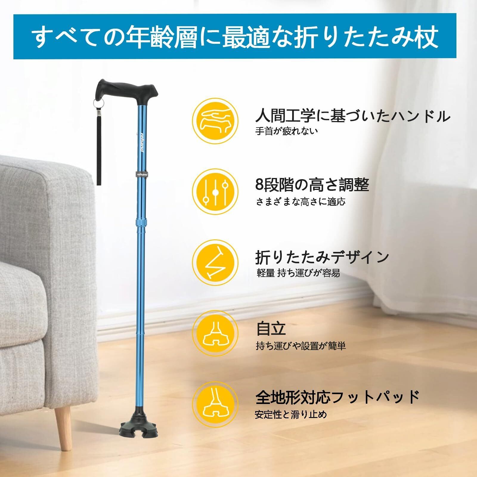 Rehand 折りたたみ式自立式 4点杖 つえ 杖 男女用 軽量 高齢者 8段階調節 - 敬老の日・母の日・父の日プレゼント