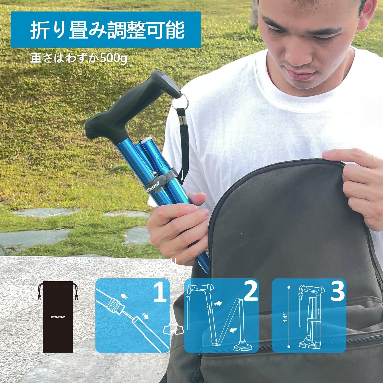 【在庫処分】Rehand 折りたたみ式自立式 4点杖 つえ 杖 男女用 軽量 高齢者 8段階調節 - 敬老の日・母の日・父の日プレゼント