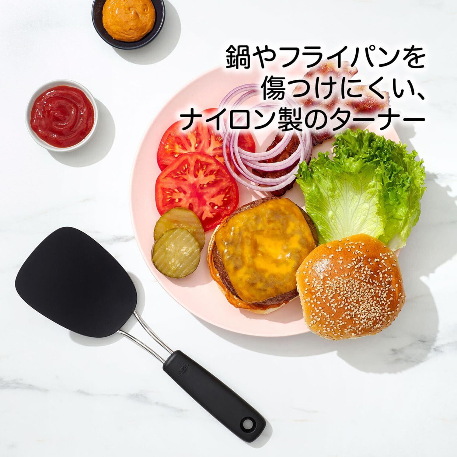 OXO オクソー フライ返し 食材の下に入り込みやすい 適度な柔軟性 ナイロンソフト ターナー ブラック 食洗器 対応