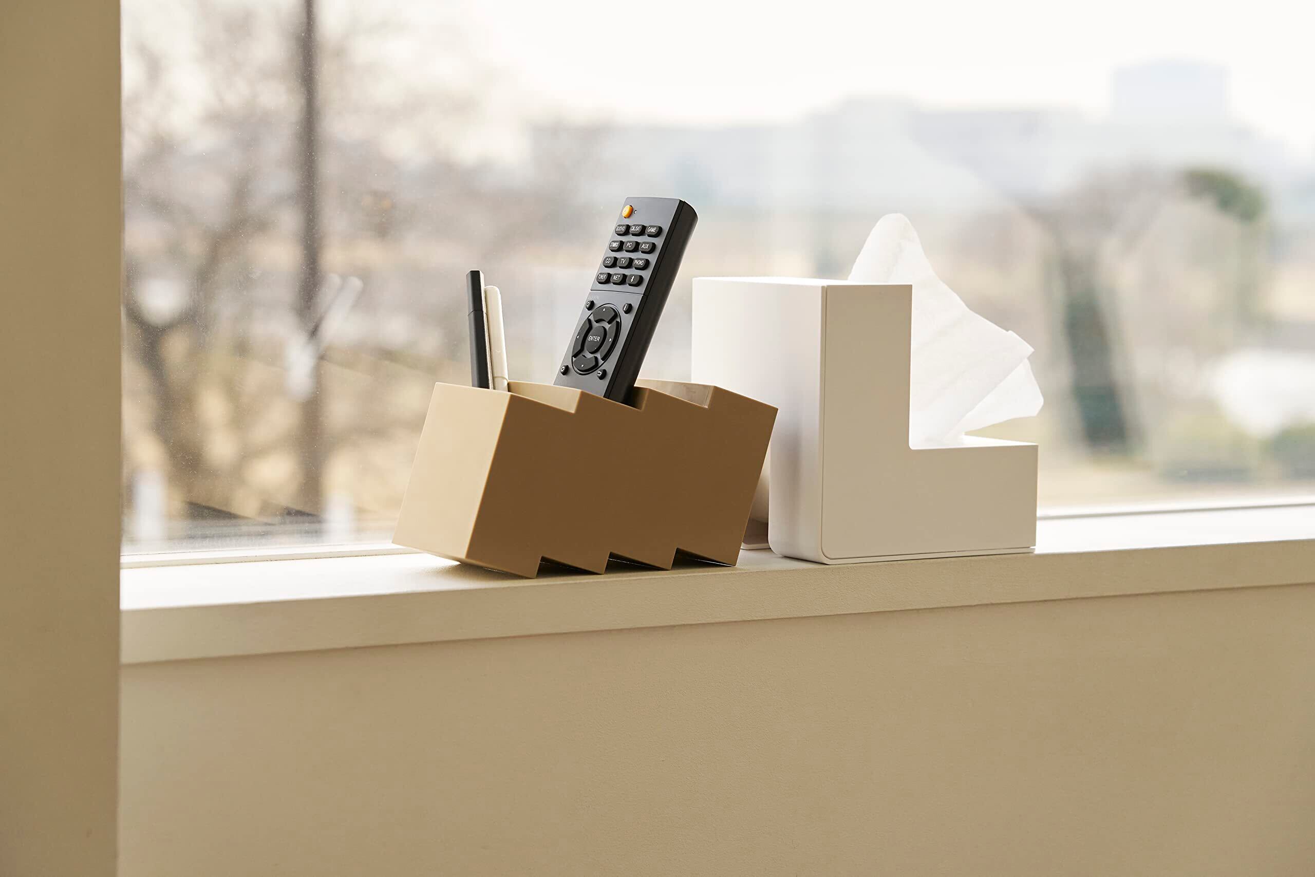 家の中で見失いがちな、リモコンの居場所が決まります。 ちょっぴり愛嬌のあるジグザグフォルムは、使いやすさを探求してたどり着いた形です。 柔らかい素材で、入れた物もテーブルも傷つけません。 眼鏡や文房具、名刺にコスメなど様々な小物の整理・収納にも。
