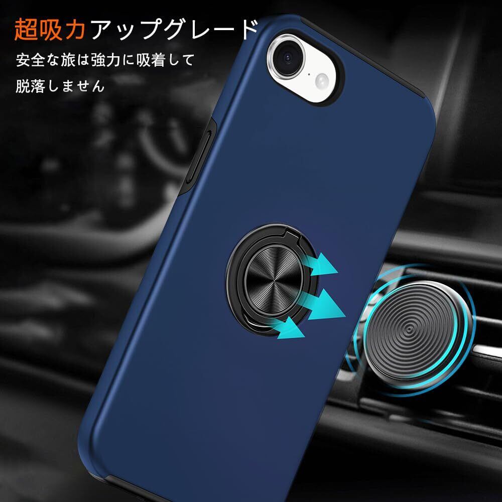 iPhone 16E ケース リング付き pc+tpu 耐衝撃 一体型 携帯カバー アイフォン16e ケース 指紋防止 360°回転 スタンド機能 車載ホルダー対応 人気 衝撃吸収 傷つけ防止 ケース ブルー