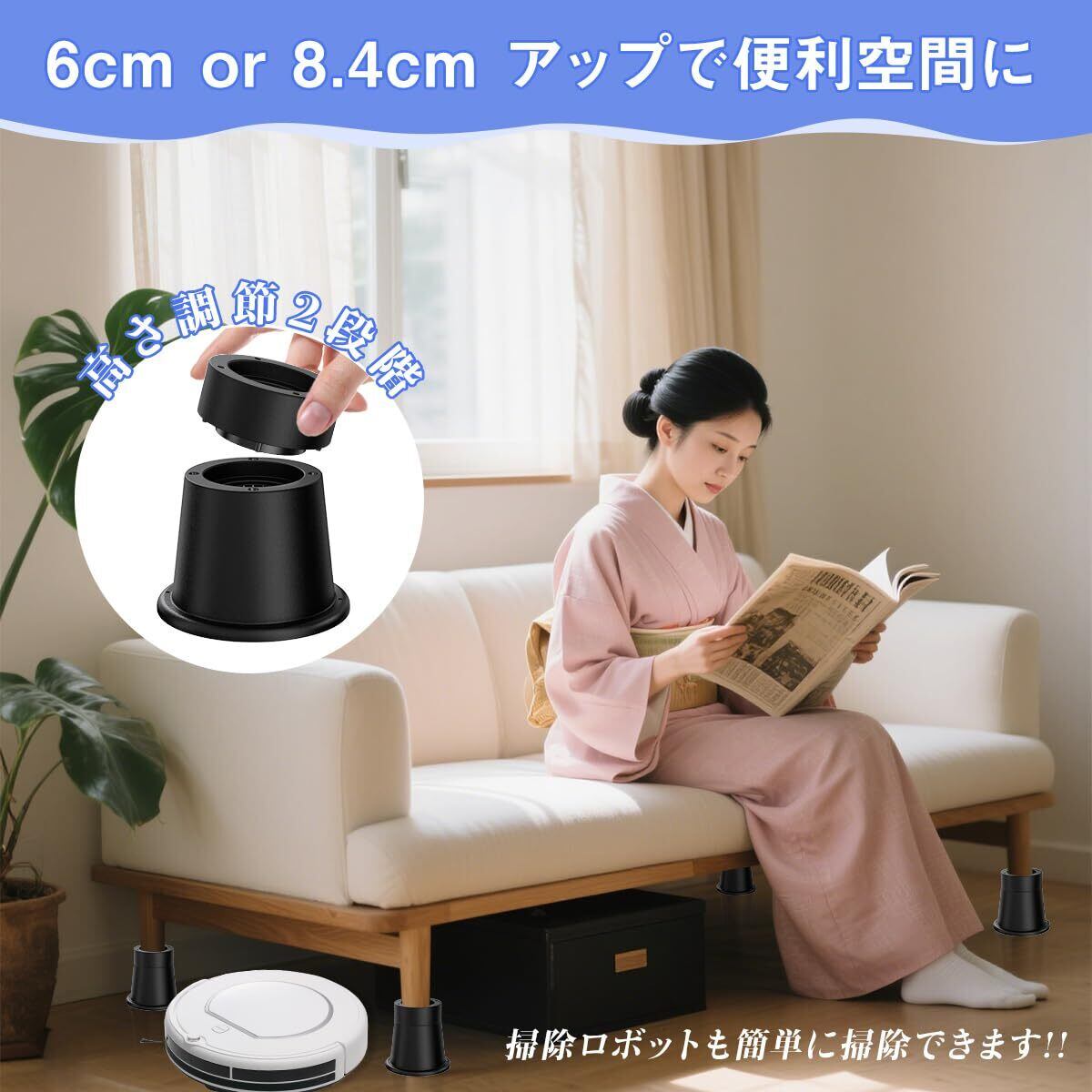 ①置くだけで設置、ソファー、テーブル、ベッドなどの家具は設置可能! ②大と小2セット合計8個。③家電や家具をかさ上げ、湿気から守り、スペースを作り、掃除も便利になります。
