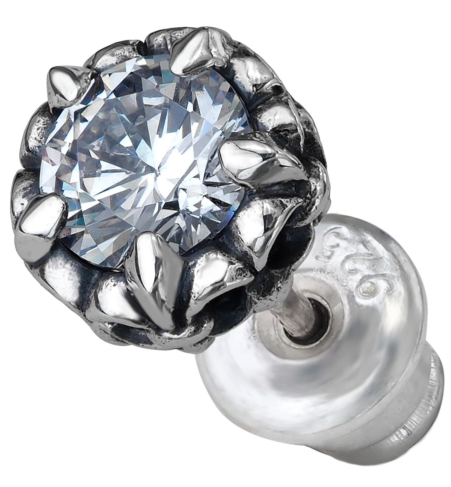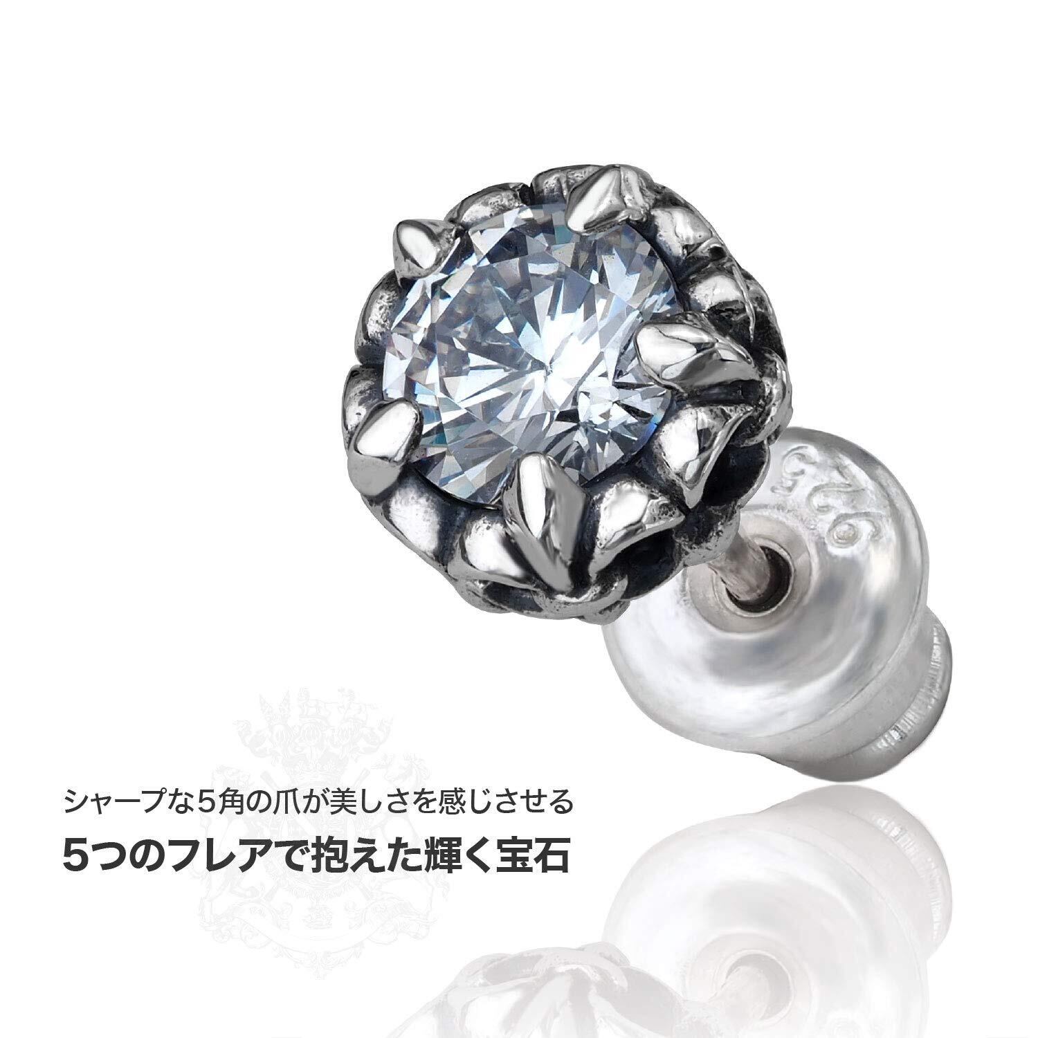 【完成されたデザイン!】シャープな5つの爪が5角の星のように輝くシルバーピアス(片耳用)です。本格的な作りこみで、シルバーの醍醐味の「銀の輝き」に「ストーンの輝き」がミックスされたクールな美しさを持つピアスです。