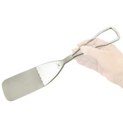 食材を返すだけではなく、身が縮んで反りかえりやすい食材(肉や魚)を押さえるのにも便利なターナー