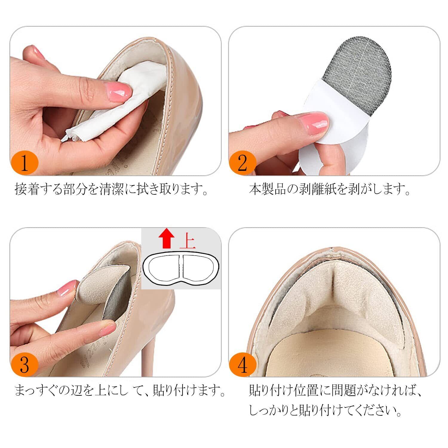 【使いやすい・滑り止め】靴ずれパッドの背面には粘着性の強いステッカー付き、裏紙を剥がしてきれいに拭いた靴に貼り付けるだけで簡単に装着できます。粘着性が強くてかかと部分に貼ると、滑り落ちる心配がありません。使い方は簡単で、初心者の方でも手軽に使用できます