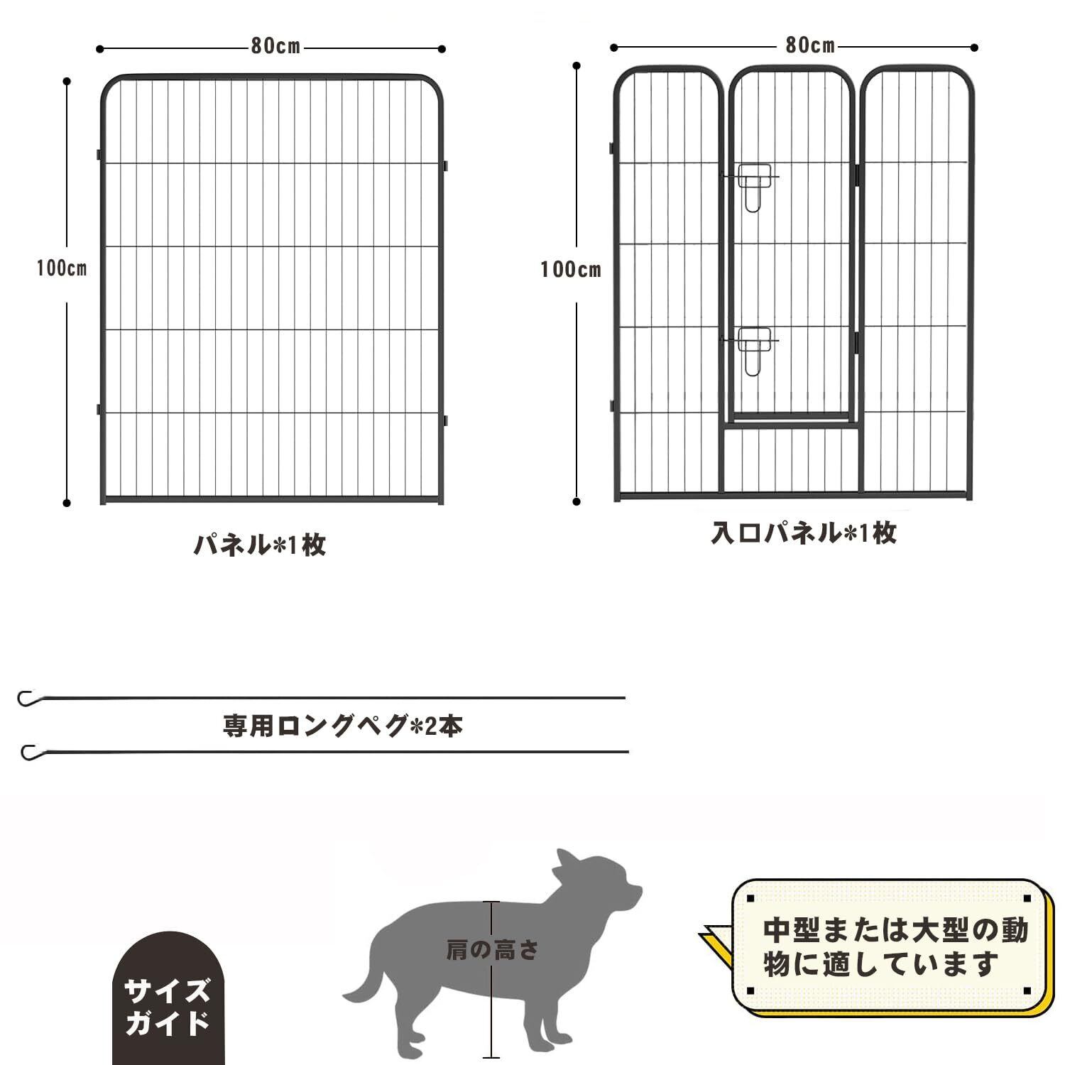 【堅牢な金属パネル:既存フェンスの拡張・破損部品の交換に対応】 丈夫で耐用性に優れた金属製フェンスパネルは、簡単に連結できる設計となっています。既にお使いの犬用フェンスの範囲を拡大したい場合や、破損した部分を交換する場合に活用でき、ペットの活動エリアを常に安全に保つことができます。