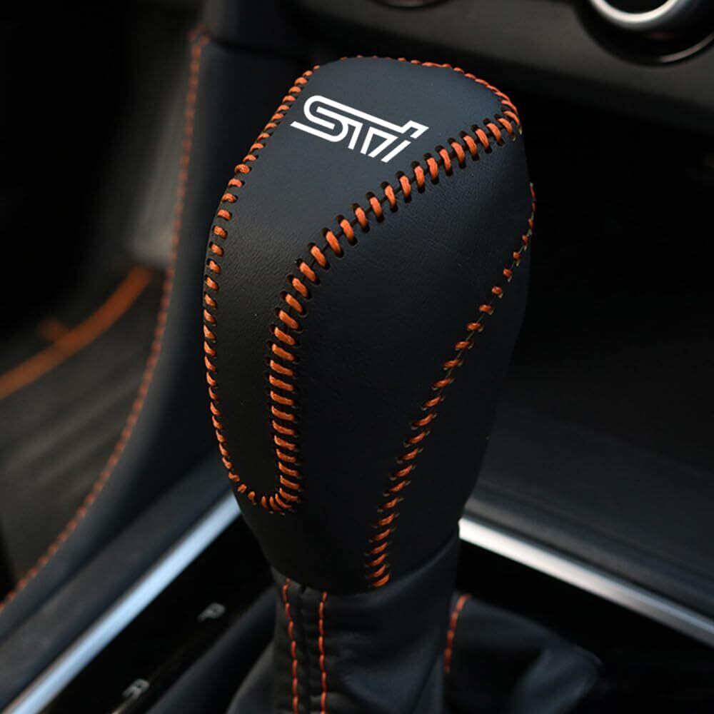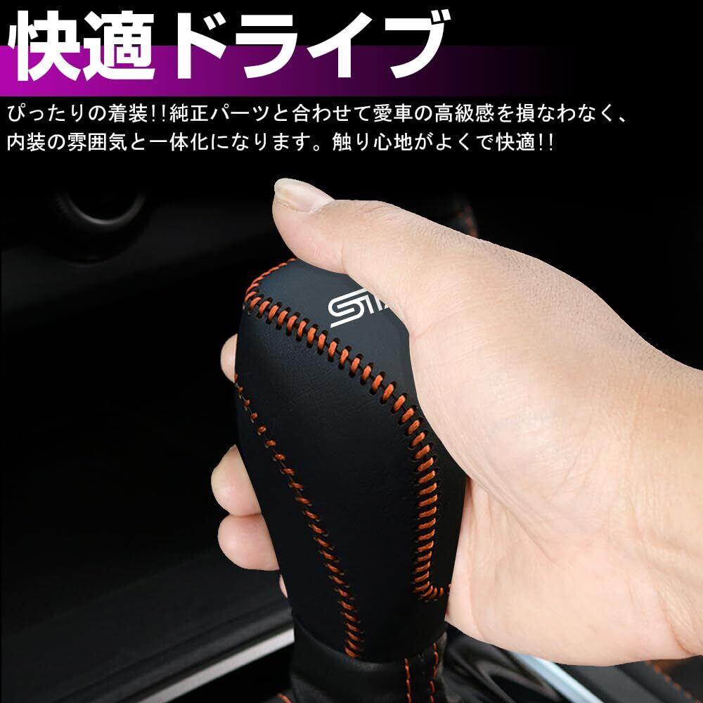 XIKER スバル レヴォーグ VN系 フォレスター SK系 レガシィアウトバック BT系 インプレッサG4 GK系 インプレッサスポーツ GT系 専用 ギアシフトノブ カバー シフトレバー レザー セレクトレバーヘッド保護カバー 傷 汚れ防止 被せるだけパーツ 内装 カスタム パーツ ドレスアップ (ブラック&オレンジステッチ)