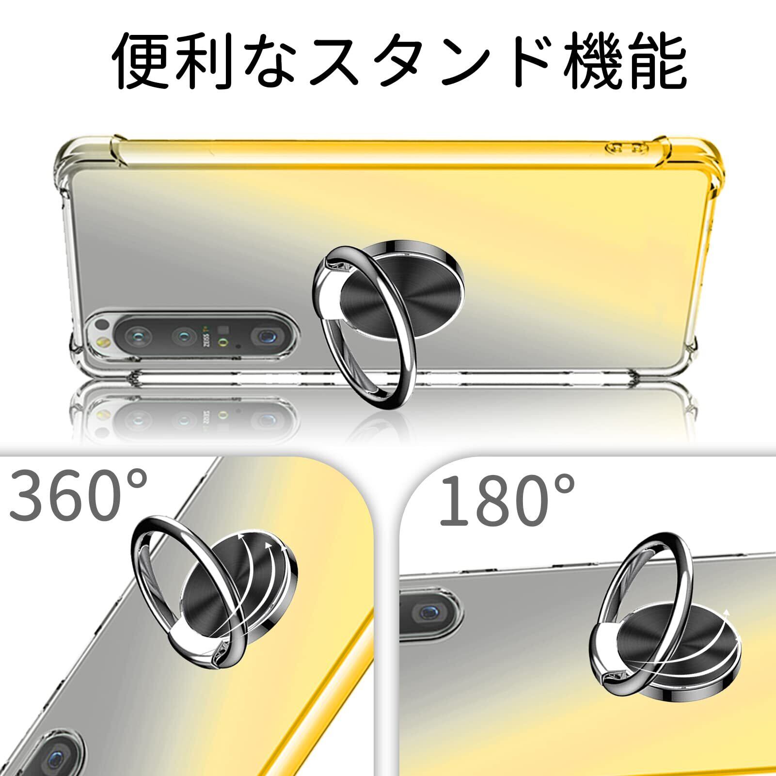 Xperia 8 ケース リング クリア 透明 スリム 薄型 TPU Xperia 20 / au SOV42 / Softbank 902SO カバー 耐衝撃 クリア 透明 スリム 薄型 グラデーション スタンド機能 車載ホルダー TPU 黄変防止 指紋防止 防塵 滑り防止 人気 携帯カバー 黑+金D634-Xperia 8-07