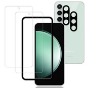 【特価商品】KPNS ガラスフィルム Galaxy S23 FE 用 (2枚)ガラスフィルム + (2枚)カメラフィルム + ガイド枠付き 日本旭硝子素材採用 全面 保護フィルム 強化ガラス フィルム カメラ保護 レンズカバー 対応