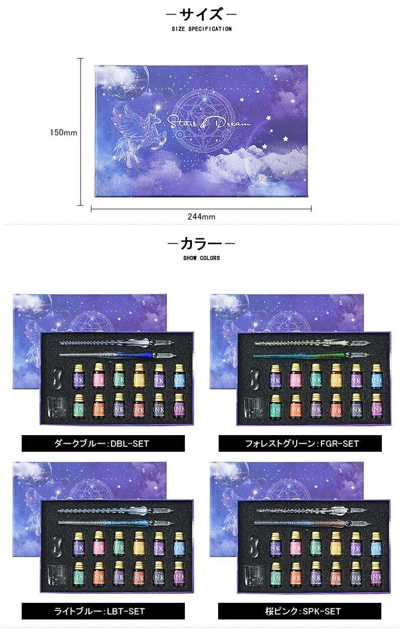 【商品内容】ガラスペン2本、インク12本、ペン置き1点、クリーニングカップ1点