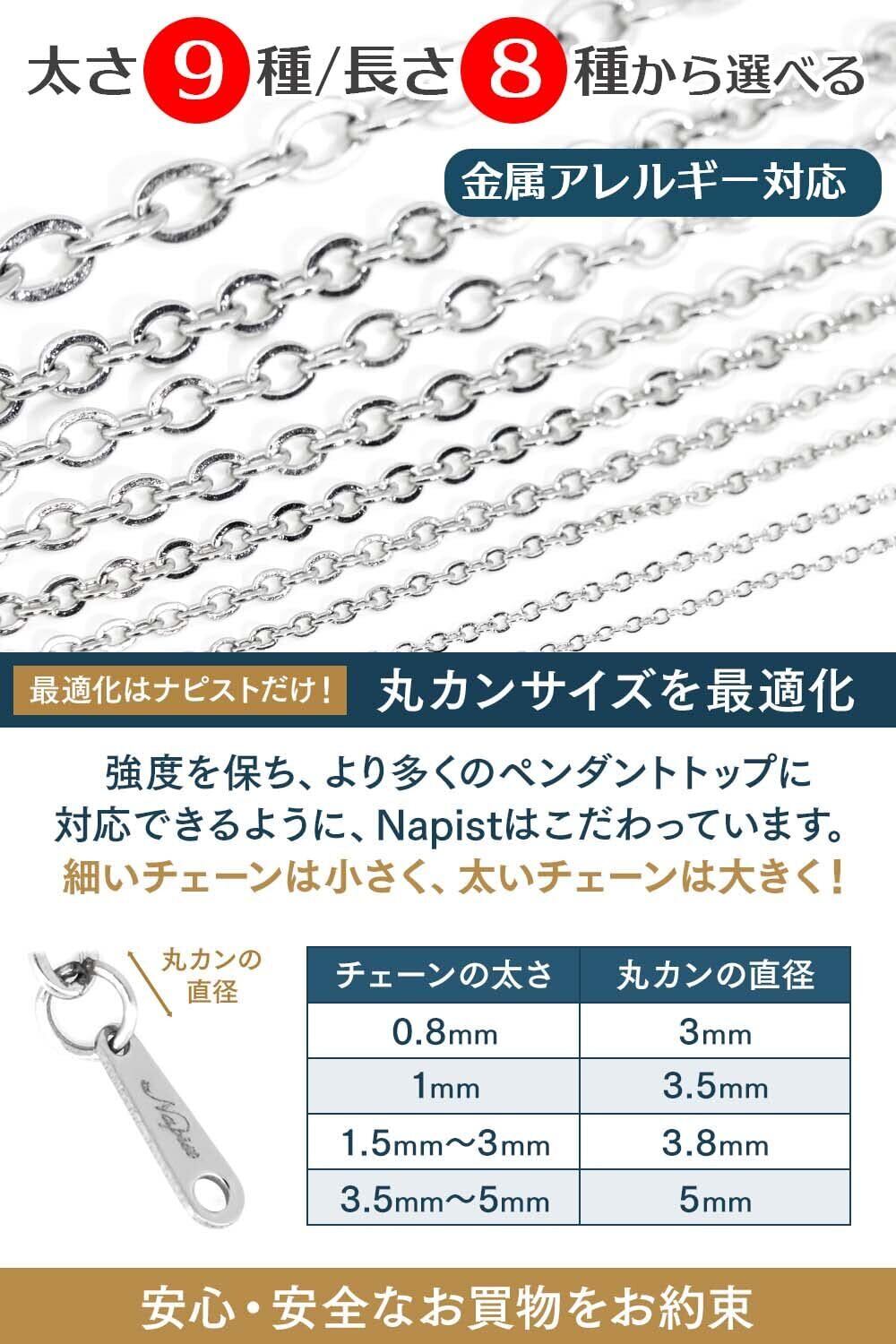 【 ネックレス チェーン のサイズ 】長さ:45cm / 太さ:0.8mm / 重量:0.85g/ 留め具:カニカン(つけ外ししやすいオリジナルフック金具) /フック金具の幅:約3mm/丸カン直径:約3mm(ペンダントトップの通し穴のサイズをご確認ください。)