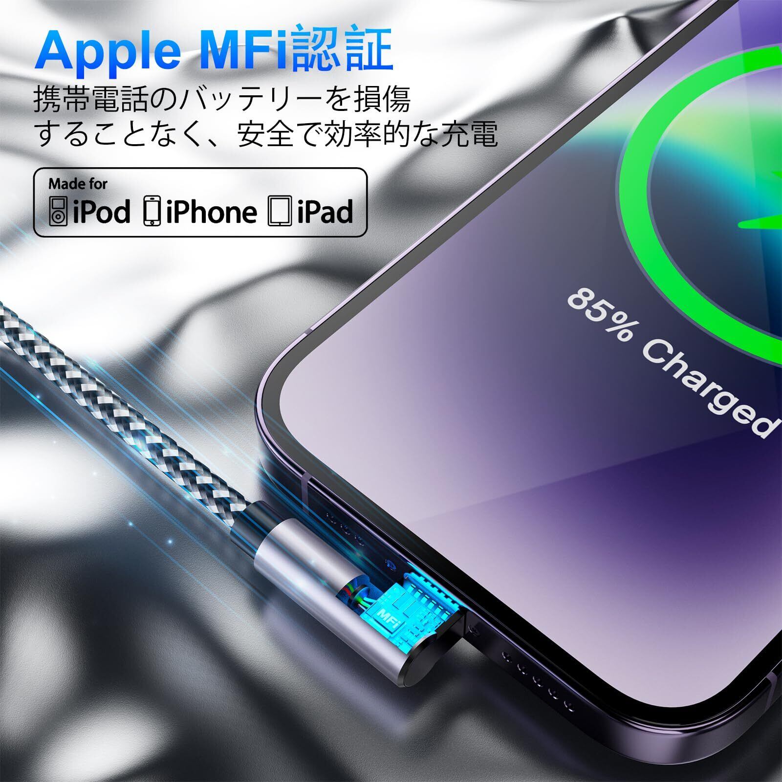 iPhone 充電ケーブル 短い L字 15cm/30cm*2/50cm/100cm 5本セット ライトニングケーブル 直角 MFi認証 アイフォン充電ケーブル 急速充電&同期 データ転送 断線防止 超高耐久 iPhone 14/13/12/8/SE/iPad/AirPods/Carplayなど各種対応