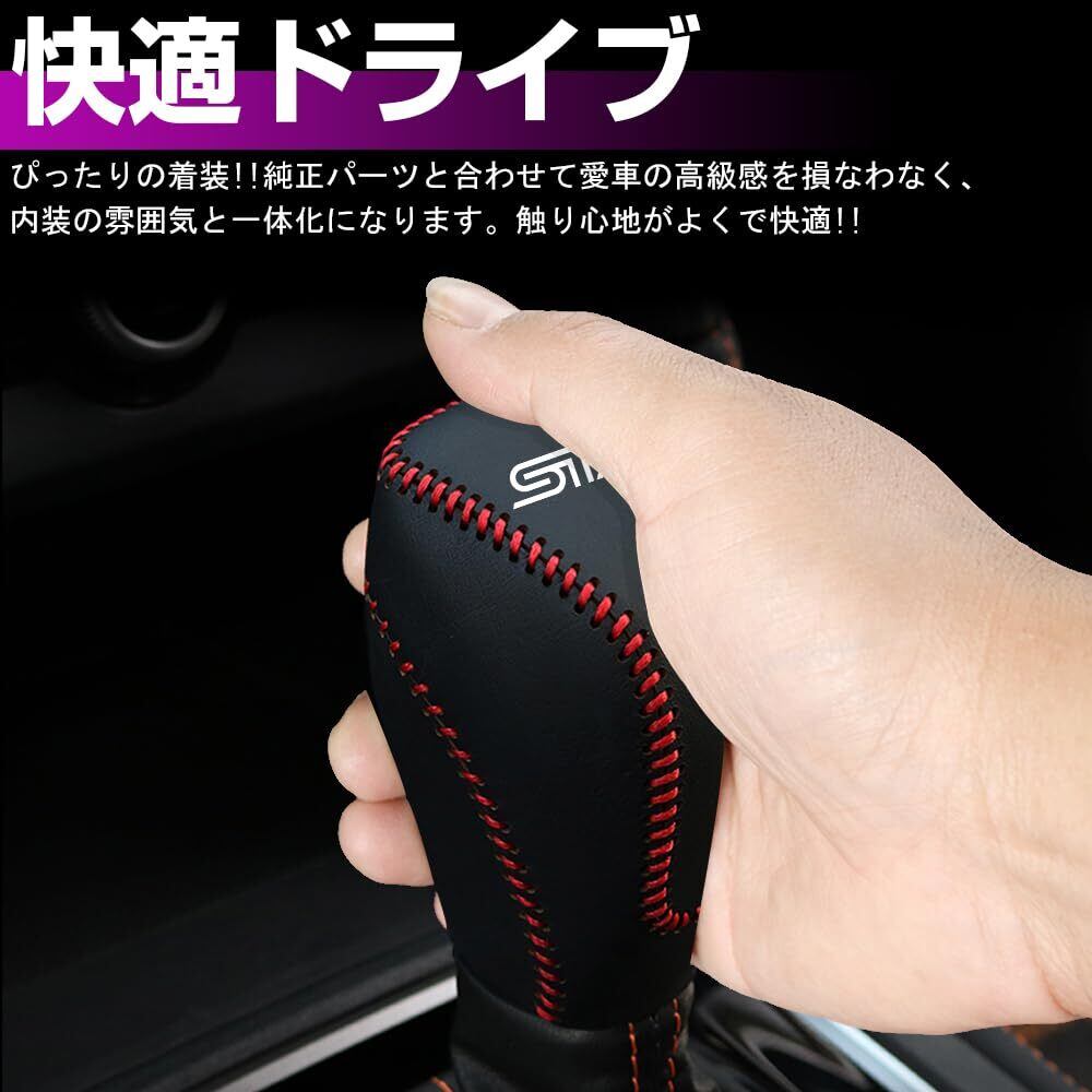 XIKER スバル レヴォーグ VN系 フォレスター SK系 レガシィアウトバック BT系 インプレッサG4 GK系 インプレッサスポーツ GT系 専用 ギアシフトノブ カバー シフトレバー レザー セレクトレバーヘッド保護カバー 傷 汚れ防止 被せるだけパーツ 内装 カスタム パーツ ドレスアップ (ブラック&レッドステッチ)