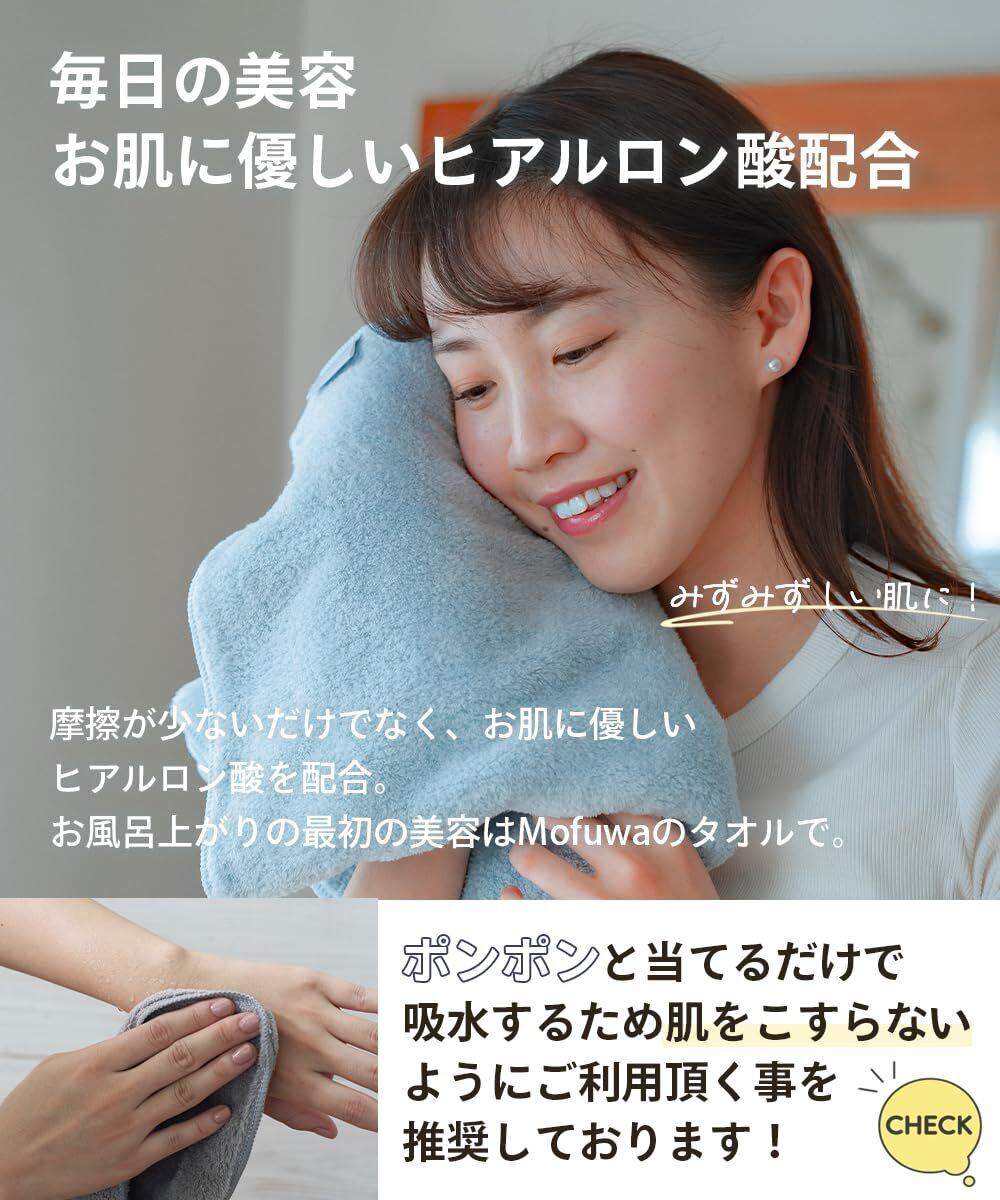 ??速乾性のあるマイクロファイバー素材 Mofuwaバスタオルは高品質のマイクロファイバー生地を使用しています。速乾性があり、使った後の乾燥も早いので、いつでも快適に使えます。洗濯も簡単です。
