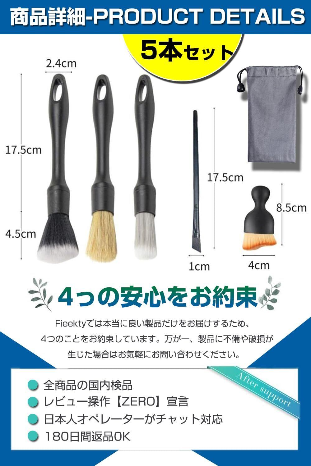 【自動車整備士推薦 5種類 5本セットの洗車ブラシ】:?【ソフトブラシ】: 柔らかいブラシを使用すると、傷を効果的に防ぐことができます。?【ミディアムブラシ】: 豚毛ブラシ。主に車のロゴ、車のグリル、ヘッドライトの隙間、車体の隙間などのやや硬い部分の清掃に使用されます。?【ハードブラシ】: ハードの洗車ブラシで狭い隙間や強固な汚れに最適なブラシ。?【マイクロブラシ】:車のエンブレム、レター、ヘッドライトの隙間、車体の隙間など汚れをピンポイントで除去できます。?【ソフトブラシ車内用】主にエアコンの出口、ハンドルの隙間、シートの隙間、革の表面などに使用できます。