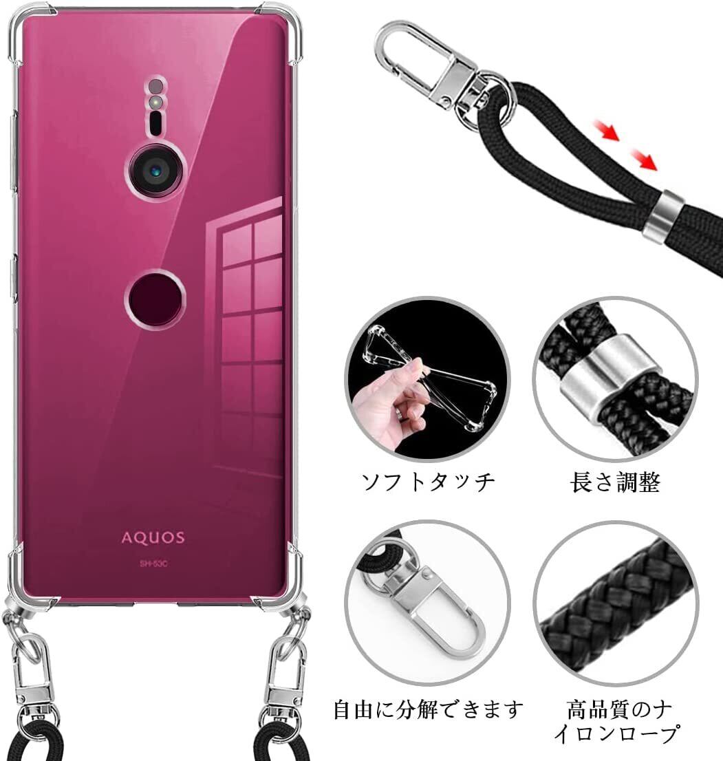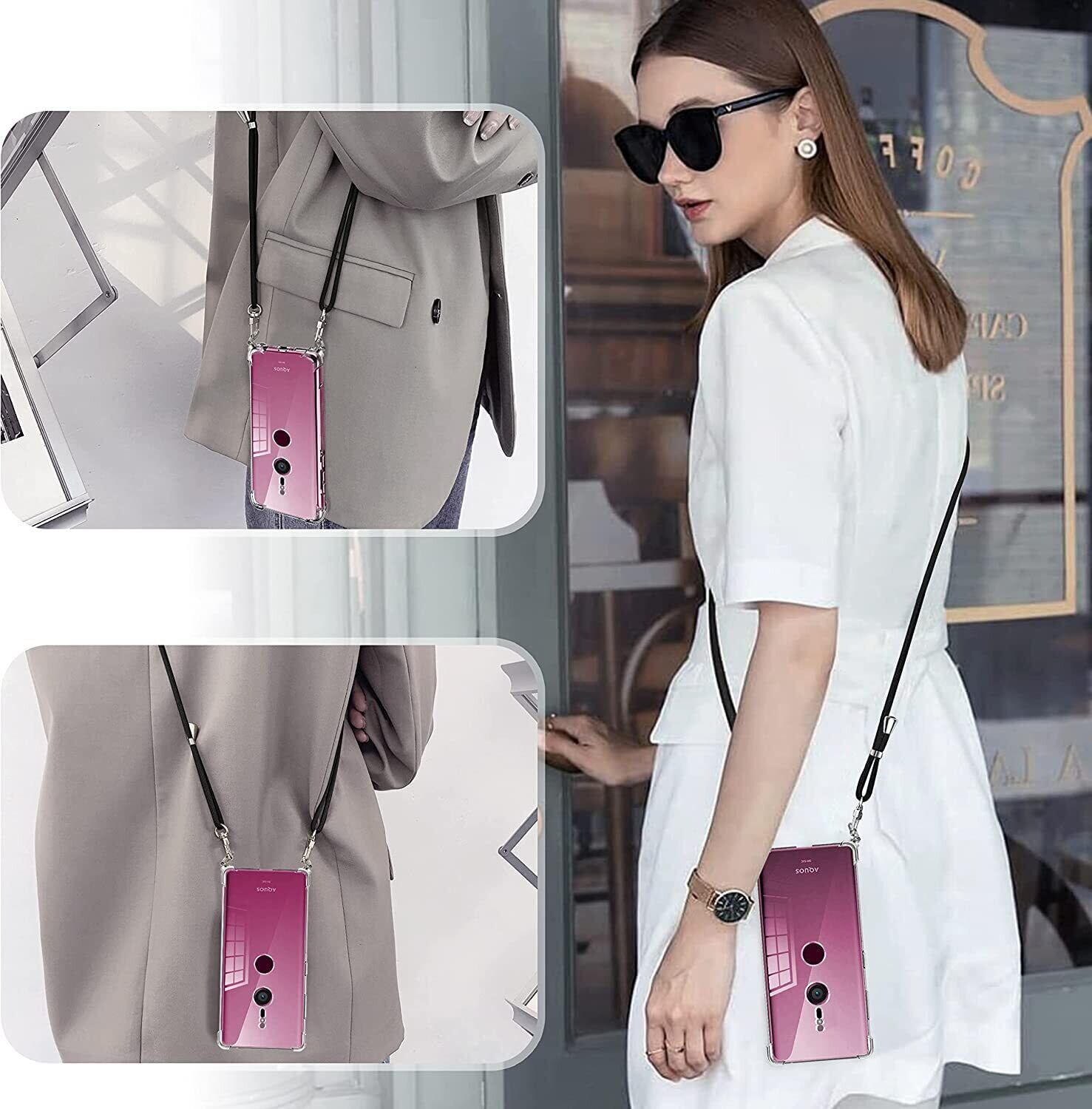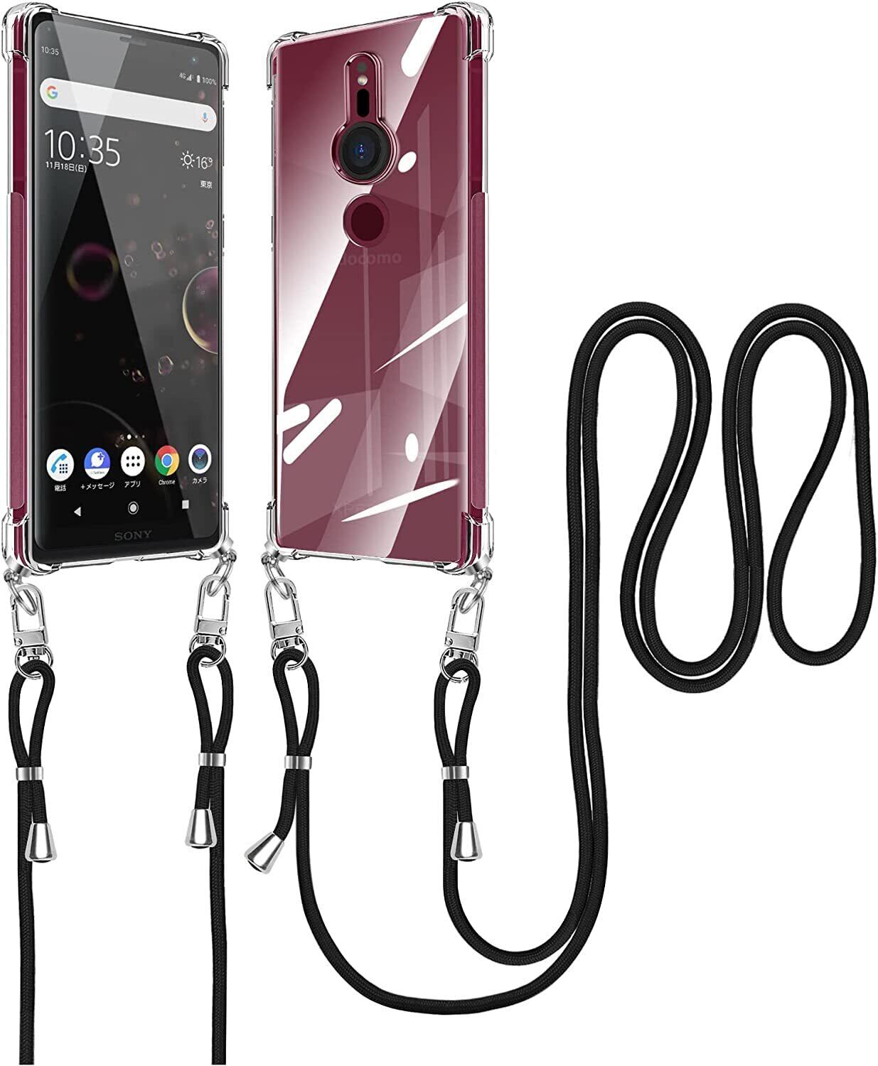 Sony Xperia XZ2 ケース クリア SO-03K スマホケース SOV37 カバー ネック ショルダー ストラップ付き 肩掛け 斜めかけ エクスペリア XZ2 702SO 縄掛けケース TPU 薄型 軽量 取り外し可能 指紋防止 落下防止 柔軟【透明】