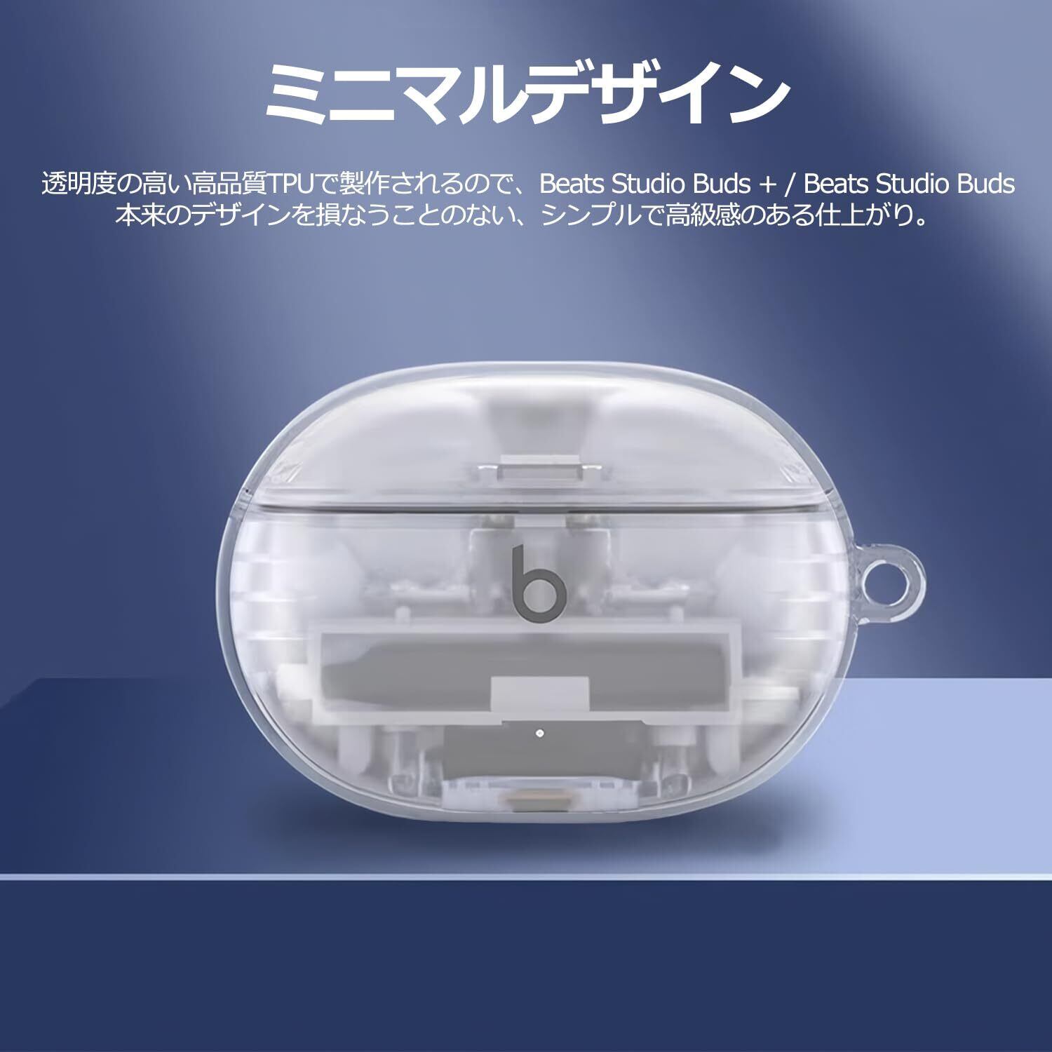 【透明なケースでシンプルでスタイリッシュに】柔らかいTPUで作られたBeats Studio Buds + / Beats Studio Buds用透明カバー。シンプルな保護ケースで、Beats Studio Buds + / Beats Studio Buds本体を落下や汚れから しつかり保護。クリアカラーのため、Beats Studio Buds + / Beats Studio Buds本体のカラーやデザインの良さを損ないません。