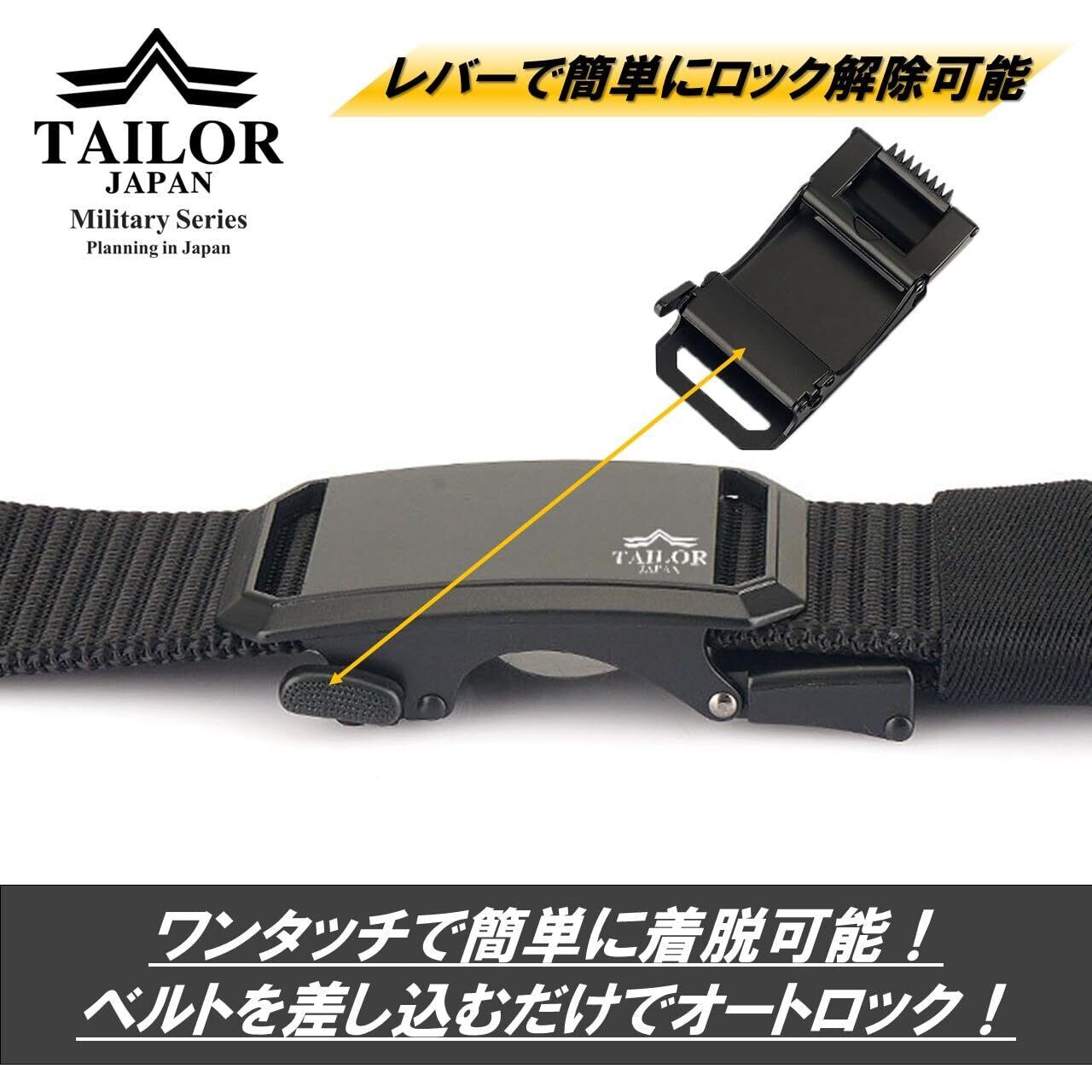 [TAILOR JAPAN] 新型 オートロックベルト サバゲーベルト タクティカルベルト ミリタリーベルト タクティカル ベルト ナイロンベルト サバゲー装備 作業用ベルト 1000Dナイロン製 フリーサイズ (ブラック)
