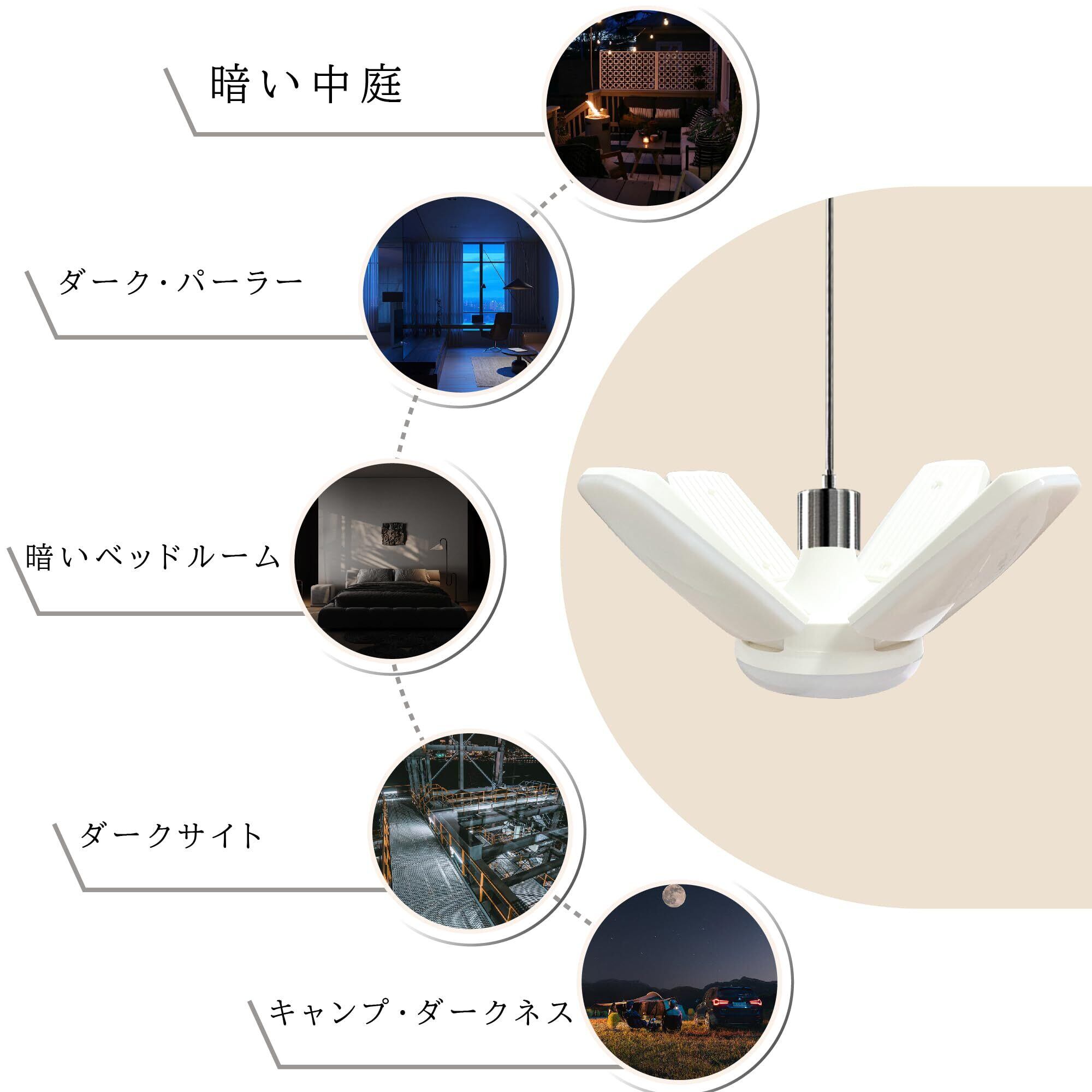 【折りたたみ式&角度調整可能】ペンダントライトには折りたたみ式LEDパネルが4つあります。上下0-90°自由に調整して、最適な照明角度を得ることができます。照明角度が最大300°に達し、通常のLEDガレージライトより照明範囲も広くなります。