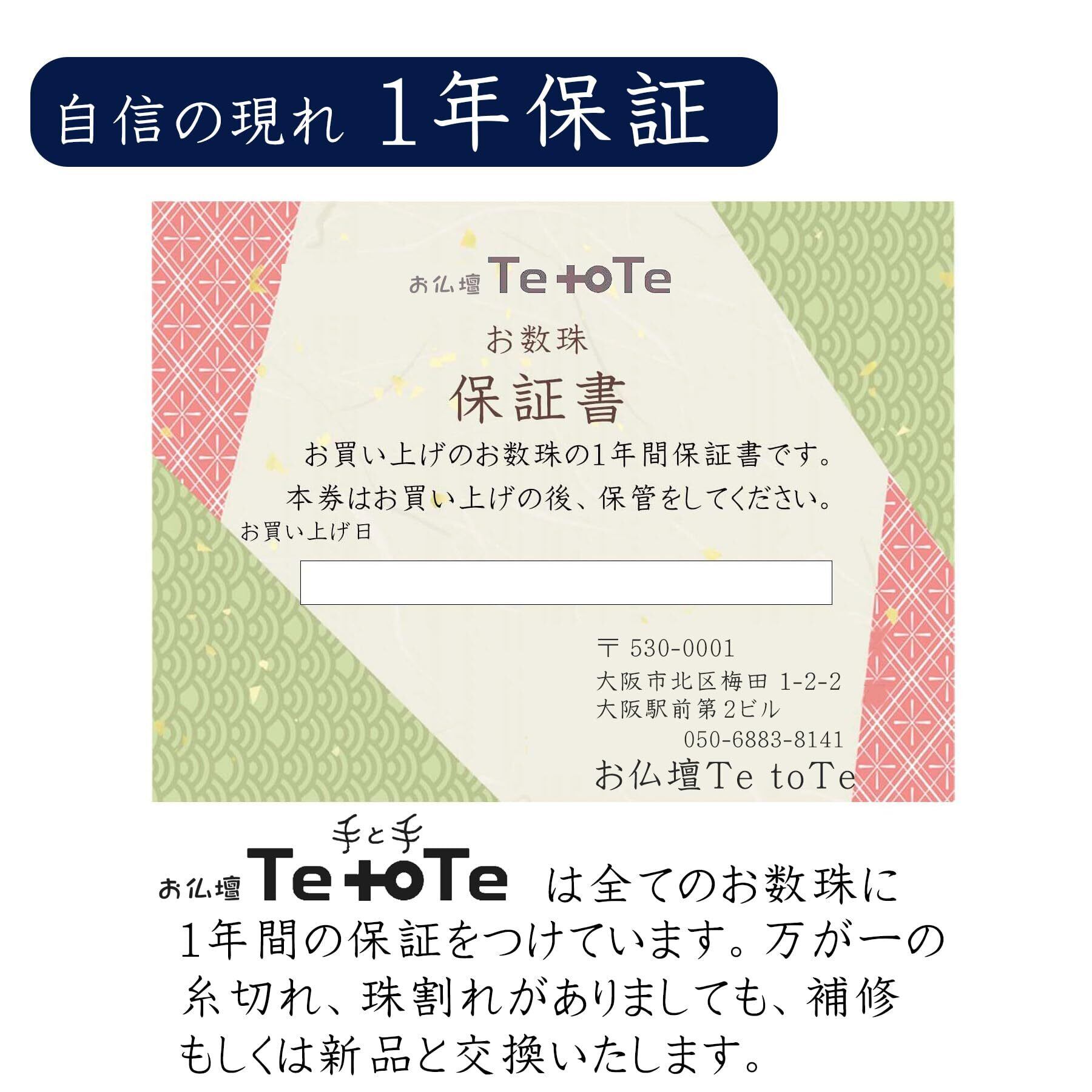 創業65年「お仏壇 Te to Te 手と手 オリジナルブランド」として特許庁に商標登録されたお数珠をお届けいたします。 大切な方への想いは色あせることはありません。その想いとお客様にいつも寄り添う優しいアイテムです。初めてお数珠を持たれる方、ふだん使いとしてお使いいただく方にもおすすめの「略式数珠」と「持ち運び用・数珠ケース」のセットです。すべての宗派で使用可能です。お墓参り・お寺参りにも安心して使用いただけます。