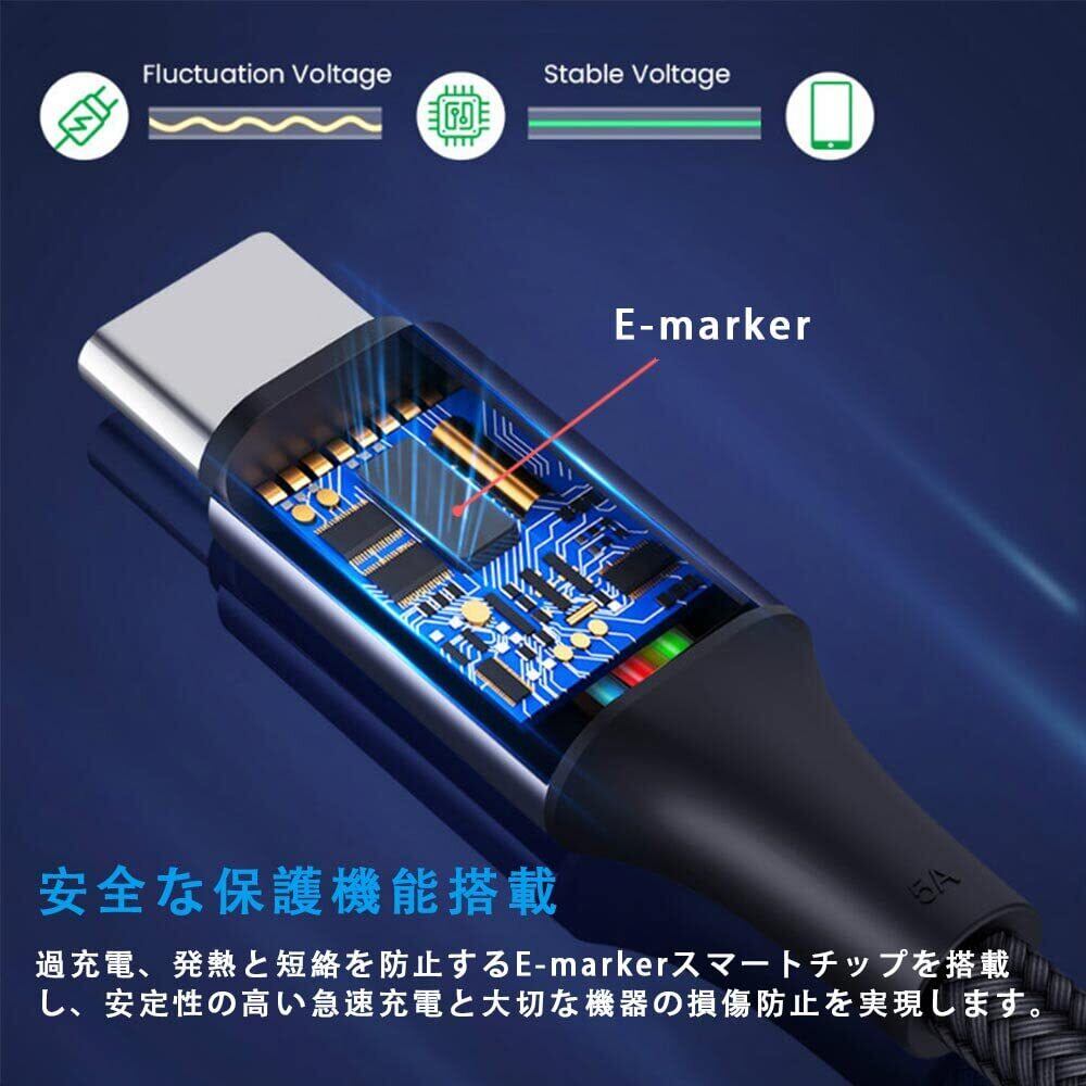 【安全な保護機能搭載】優れたE-Markerスマートチップ,最も安全な100Wの急速充電を実現する最先端のスマートチップです。過充電、発熱と短絡を防止するE-markerスマートチップを搭載し、安定性の高い急速充電と大切な機器の損傷防止を実現します。