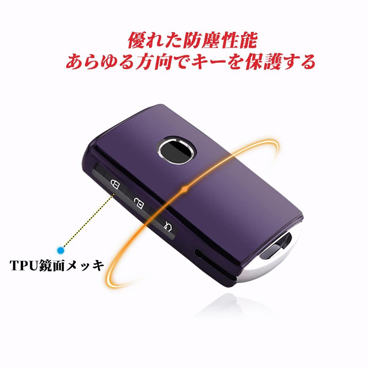 【上質な材料】:スマートキーケースにはTPU素材を採用しており、シリコンよりも固く、ハードケースより柔らかい弾力性のある素材です。つやつやした表面で曲げても割れない新素材です。TPU素材のキーケースはオイル耐性、耐水性、カビ耐性、防塵性があります。自動車の鍵を腐食や破壊からしっかり守られ、鍵の形状を保つことができる。 万が一、鍵が落ちた時、キーケースも鍵が壊されないように保護することができて、着地緩衝の効果があります。手触りが非常に柔らかい。さらに高級感が溢れます。素材・造りの良さで多くの皆様に高く評価いただいています。愛車の専用設計でフィット感抜群です。