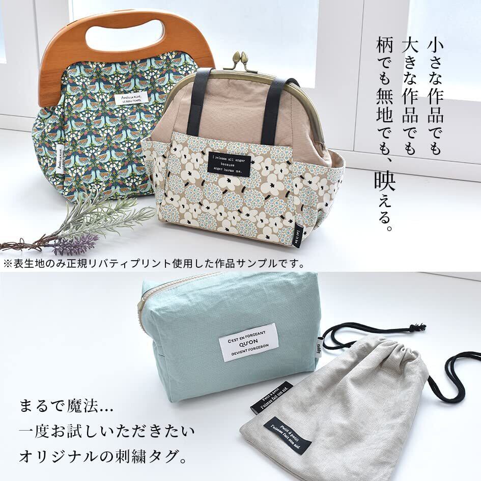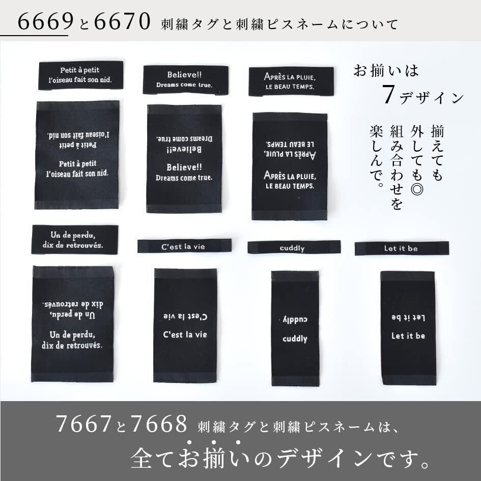 ・在庫の状況で一部内容が変わる場合がございます。・セット済み商品のため、中身の変更を承ることはできません。・ロットにより細いタグに折り目がついていない場合がございます。その場合はアイロンで折り目をつけていただきますようお願い申し上げます。・白のタグは黒のタグよりも柔らかい仕上がりとなっております。シワやヨレなどがある場合はあて布をしてアイロンをかけていただくと綺麗に直ります。・一部刺繍がずれている場合がございます。・刺繍のお色によって色むらに見える場合がございます。・刺しゅうで作られたタグですので、糸の加減で裏糸が少し見える場合や糸が飛び出している場合がございます。気になる場合はカットしてご使用ください。・折込部に汚れのようなものがある場合がございます。・断裁ズレがある場合がございます。・折り目が斜めになっている場合や、折込部に柄まで折られている場合がございます。お手数ですが、柄に合わせて当て布をしてアイロンで折り目を付け直していただきますと綺麗に直ります。上記ご了承の上、お買い求めいただきますようよろしくお願い申し上げます。