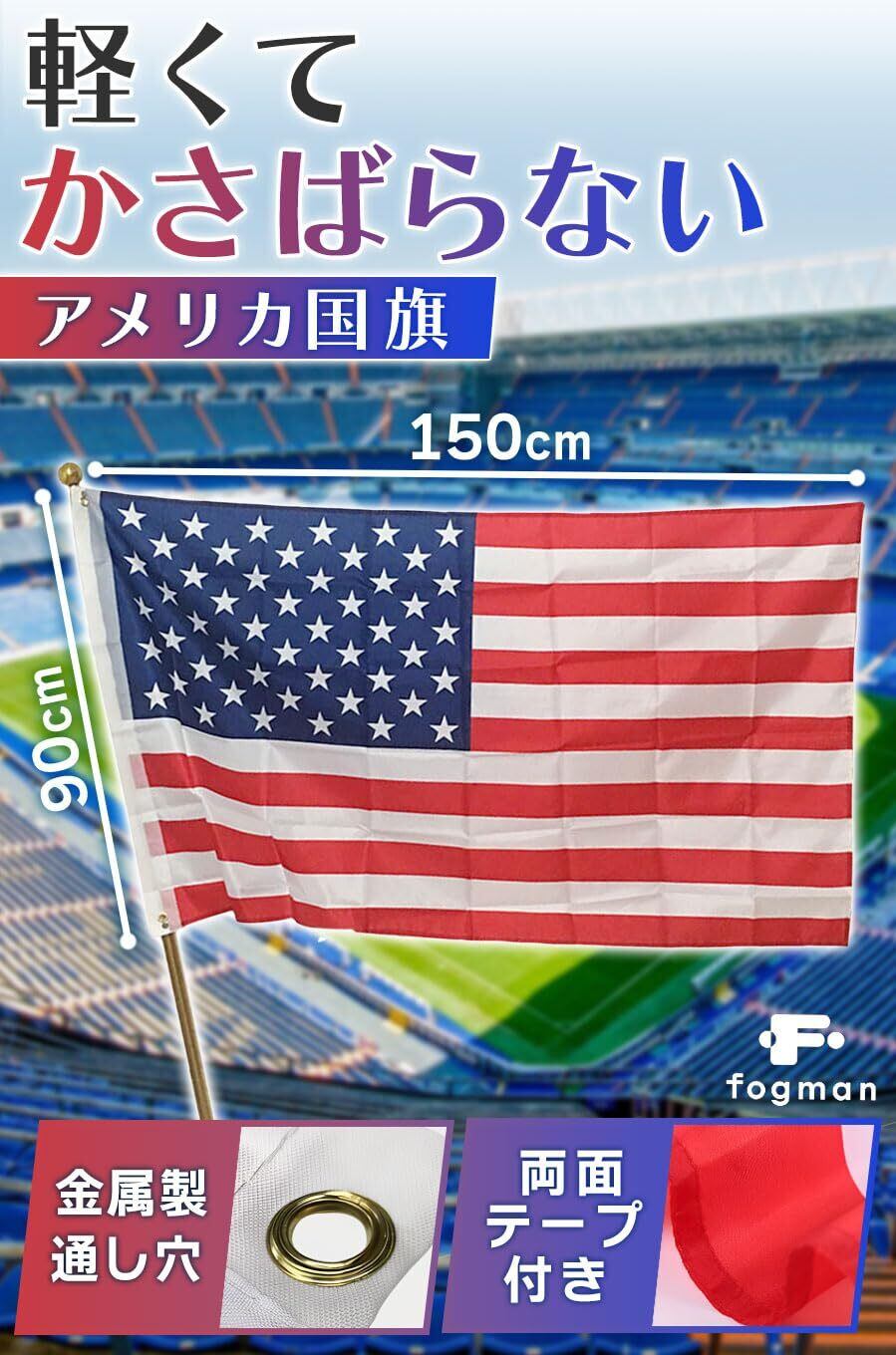 fogman アメリカ国旗 星条旗 フラッグ 150cm×90cm 大きめ インテリア イベント