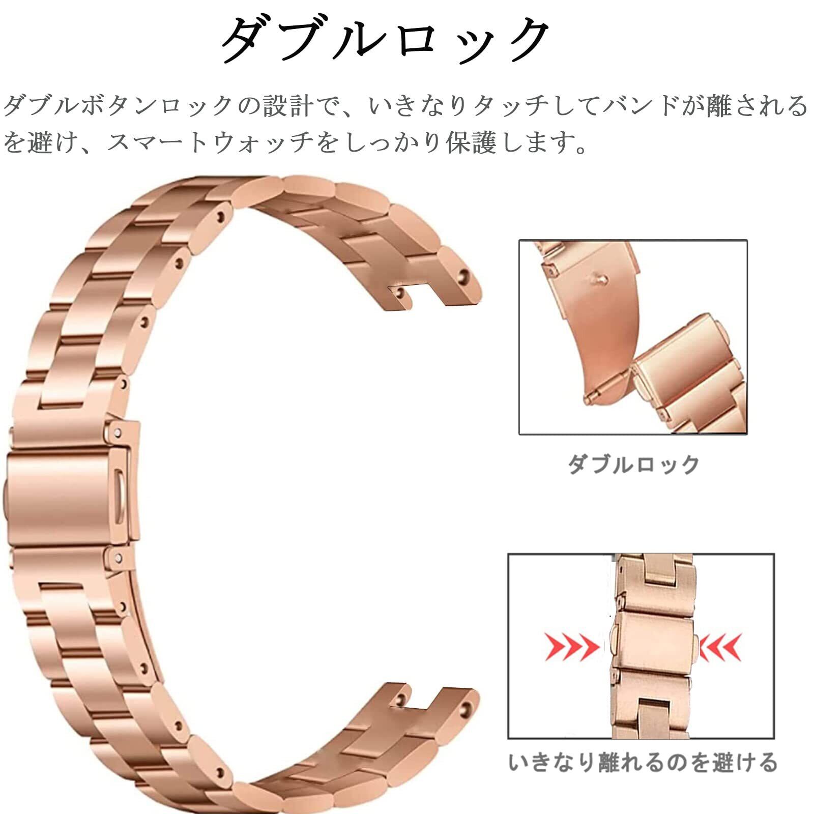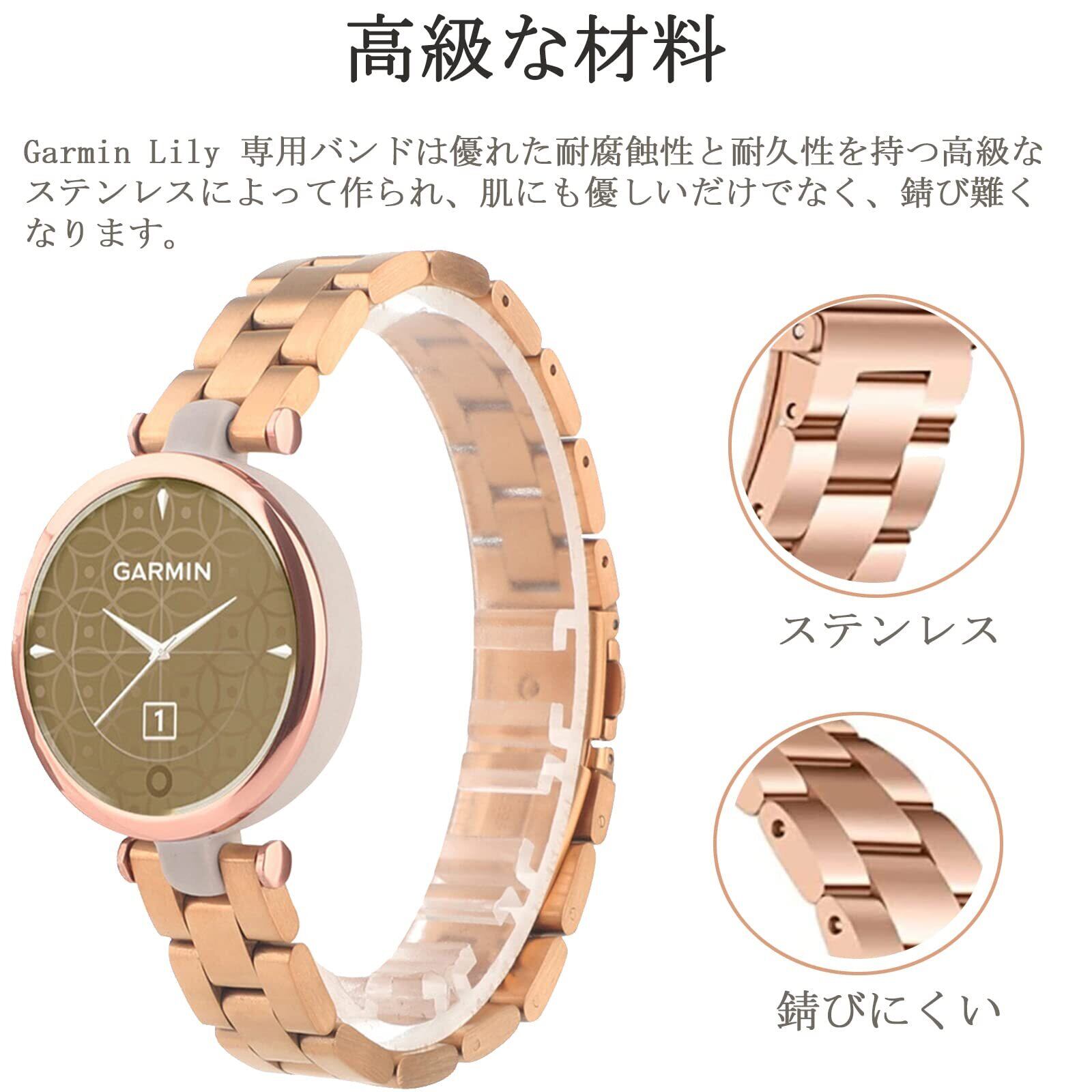 ステンレスバンド 対応Garmin(ガーミン) Lily 交換バンド 高級ステンレス Garmin Lily 金属バンド 錆びにくい 軽量 素敵 4色 男女通用 快適なデザイン 調整工具付き 調節簡単 ガーミン Lily 交換ベルト(ローズゴールド )