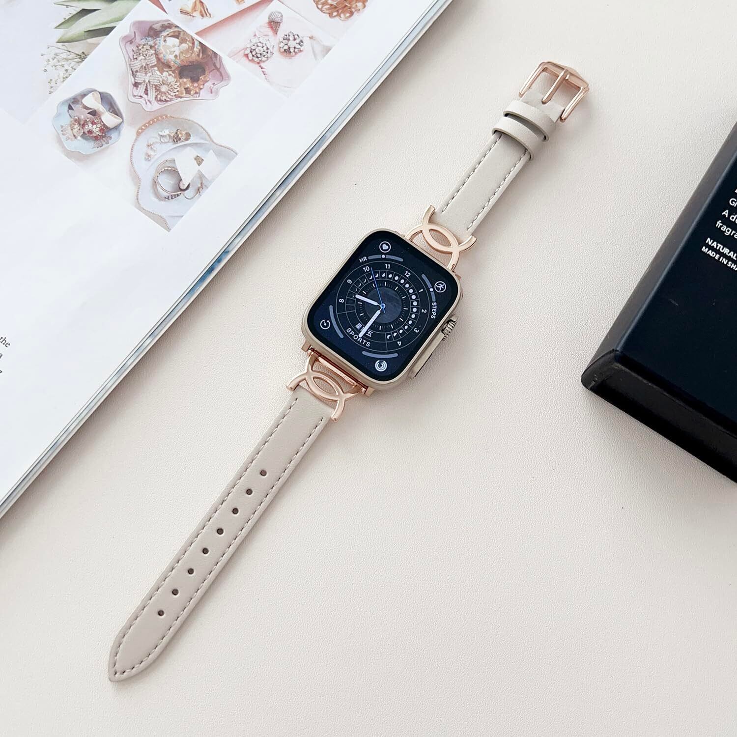 Youmai コンパチブル Apple Watch バンド 本革 レディース Apple watch Series11/10/9/ 8/7/6/5/4/3/2/1/SE レザー交換ベルト 柔らかい おしゃれ 可愛い アップルウォッチ バンド 女性専用 38mm 40mm 41mm 42mm 44mm 45mm 46mm 49mmに対応 (スターライト、46/45/44/42mm(series3の42mm)