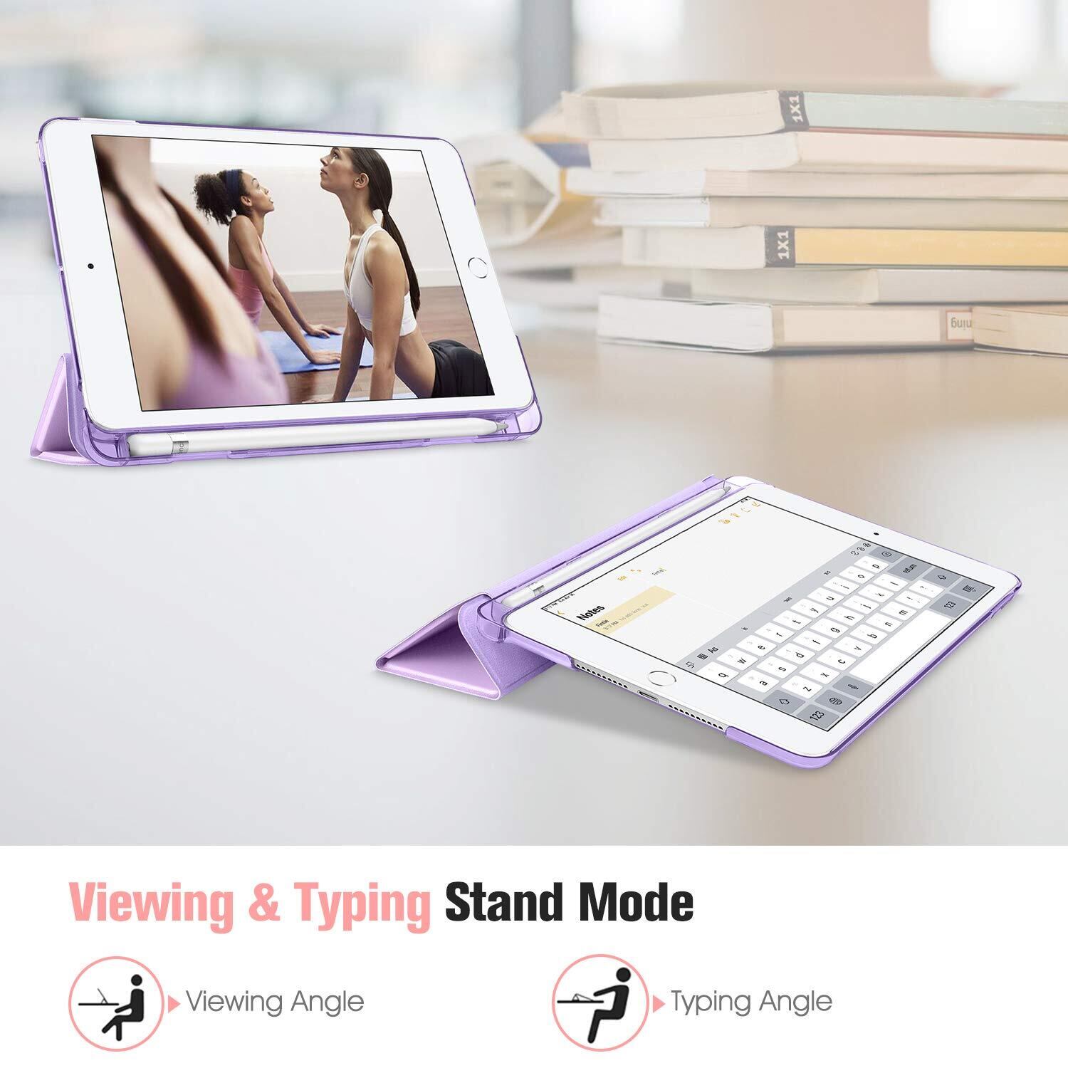 Fintie for iPad Mini 5 2019 ケース クリア 半透明 バックカバー Pencil 収納可能 ペンホルダー付き 薄型 軽量 スタンド オートスリープ機能 第5世代 7.9 インチ 保護カバー(モデル番号A2133、A2124、A2126、A2125) (モデル番号A2133、A2124、A2126、A2125) (ラベンダーパープル)