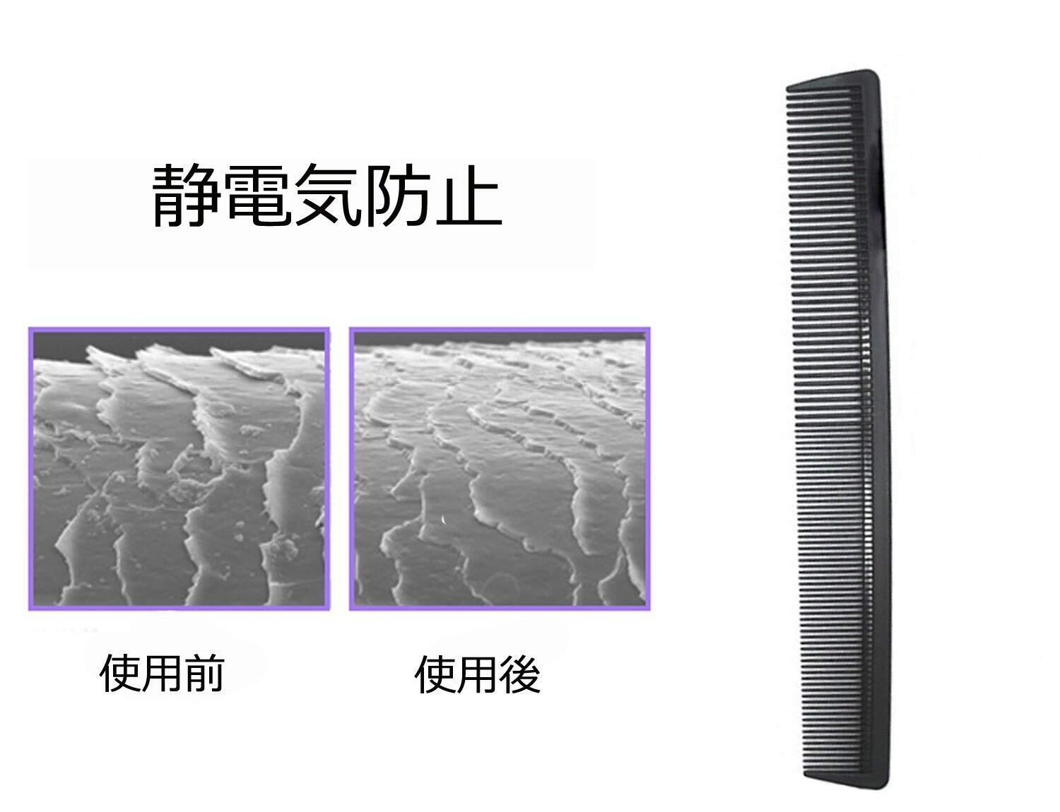 【静電気防止】:カットコームは丈夫なベークライトで、静電気が起きにくく、髪や頭皮を傷めません。