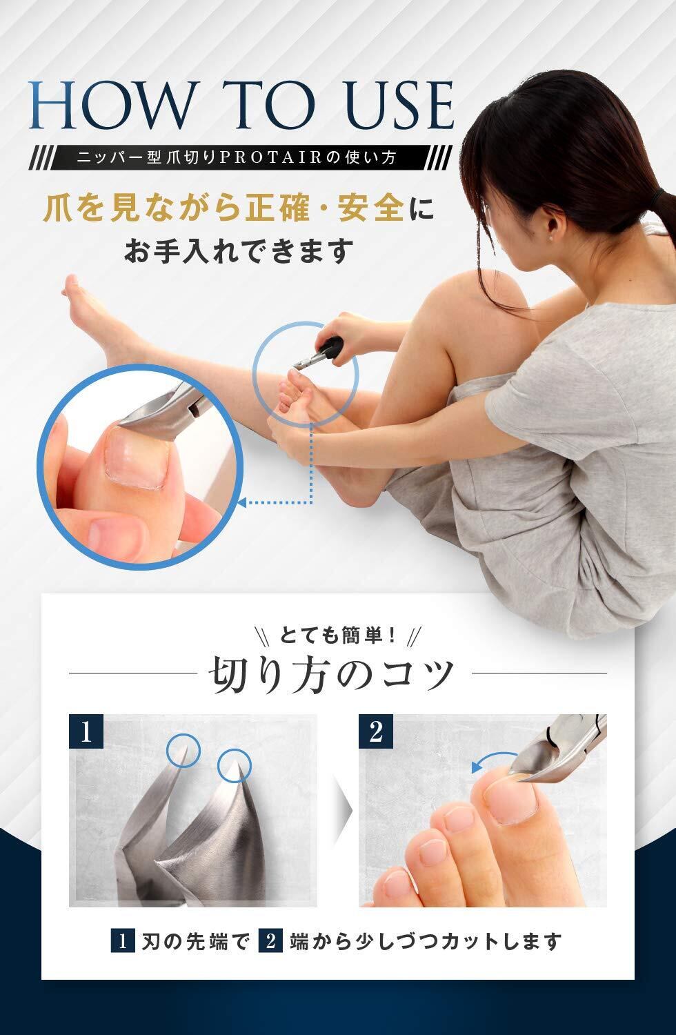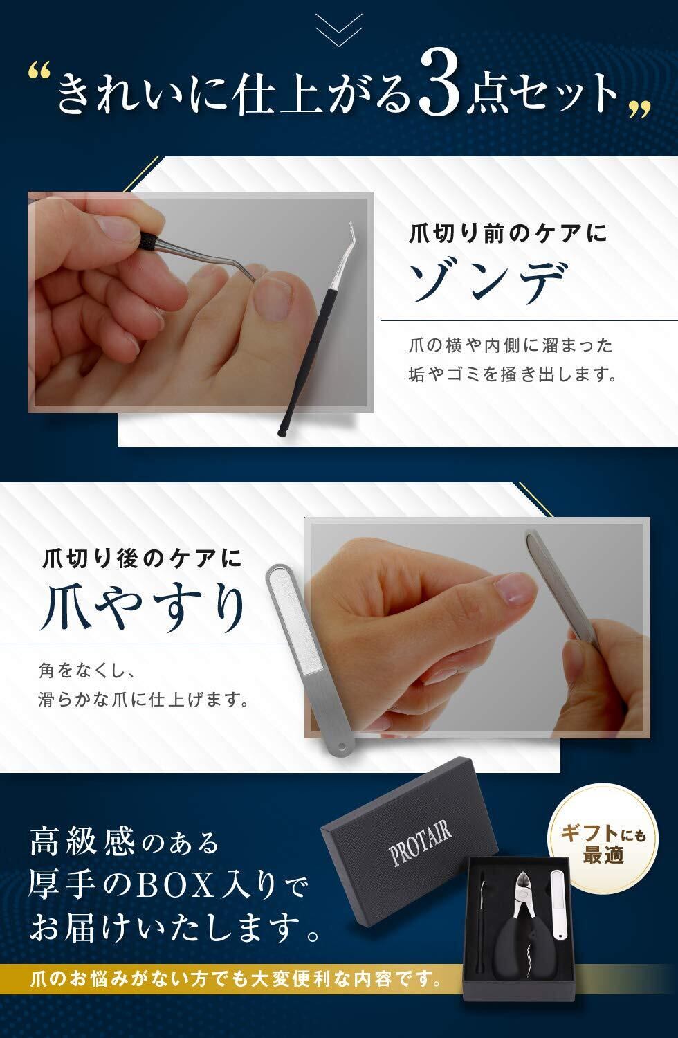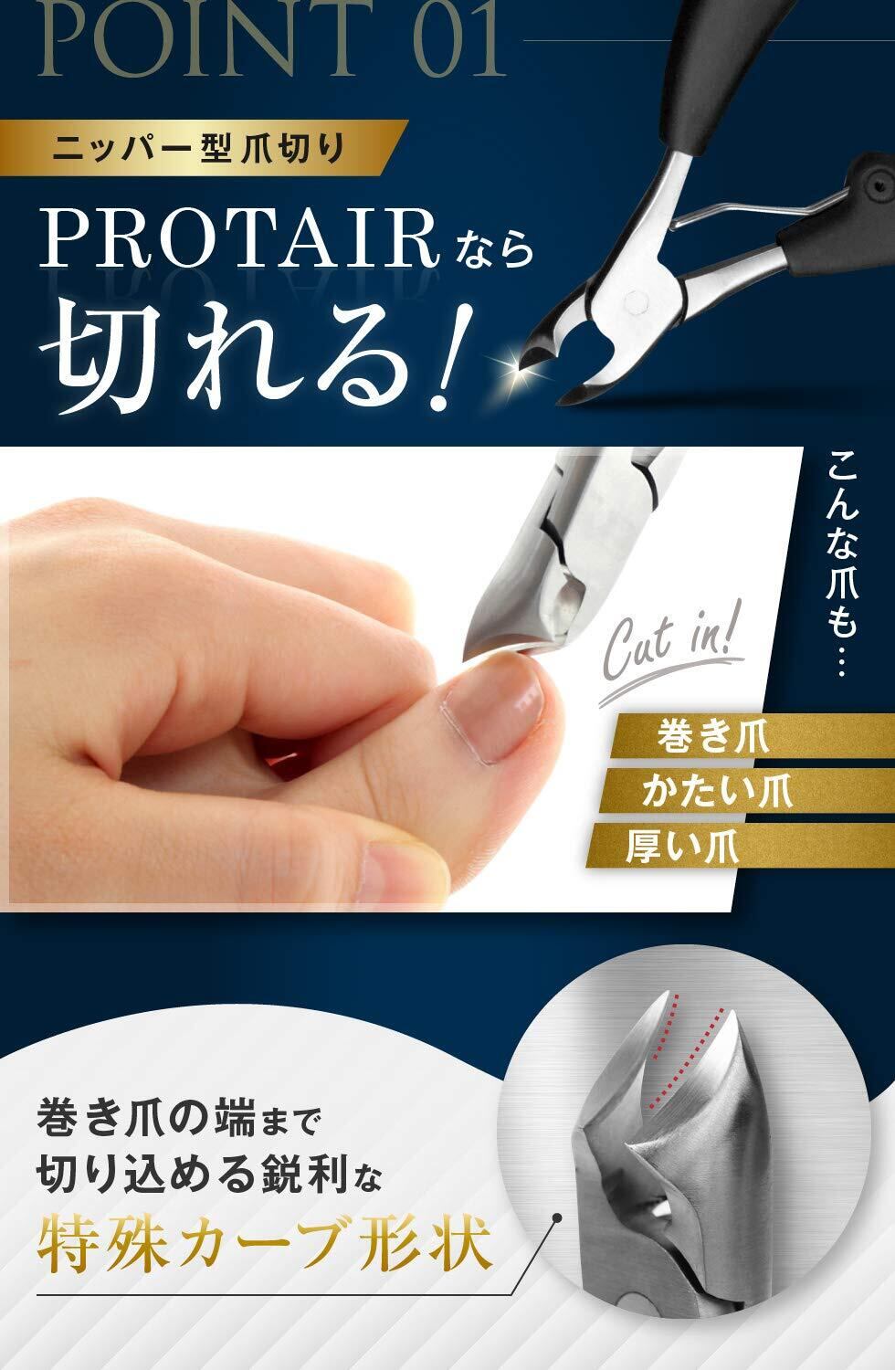 【在庫処分】PROTAIR 爪切り ニッパー 巻き爪 硬い爪 ゾンデ/爪やすり付き ステンレス鋼 シルバー