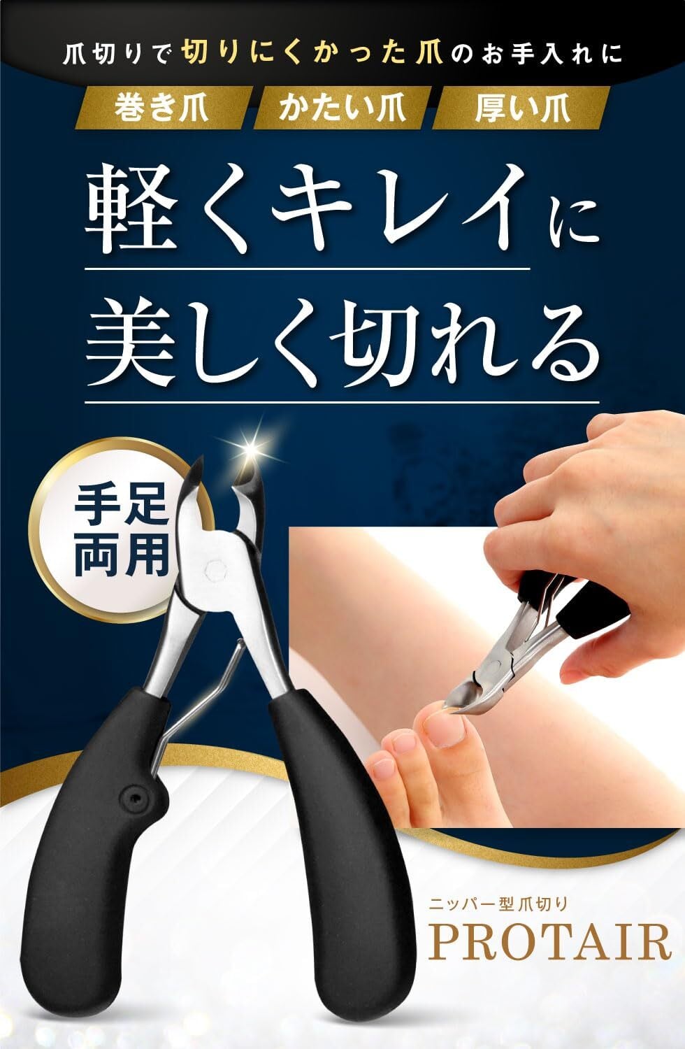 刃先が鋭利でカーブした形状なので、巻き爪用として最適です。硬い足の爪や変形爪などの切りにくい爪でも、切りたい部分を狙って切る事が出来ます。