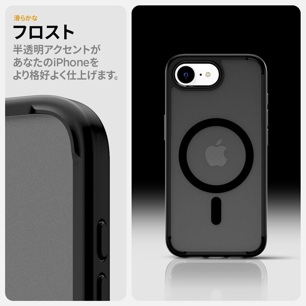 Spigen 【創業18年の技術力】 iPhone 16e ケース MagSafeアクセサリー対応 マグネット搭載 半透明 ストラップホール 指紋防止 米軍MIL規格 ウルトラ・ハイブリッド・マグフィット ACS09144 (フロスト・ブラック)