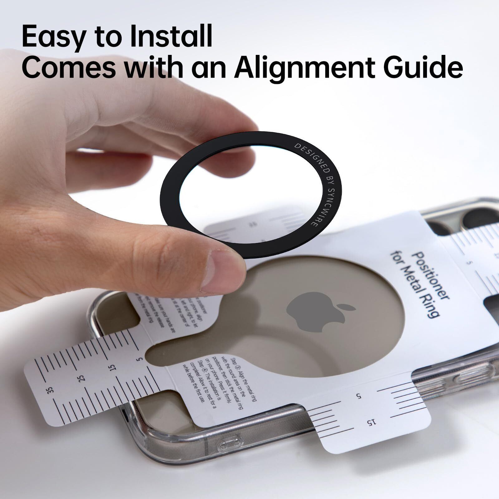 SYNCWIRE MagSafe リングシール 3枚入り マグセーフ シール 強力粘着 磁気増強 マグネットリング ステッカー 磁気ワイヤレス充電対応 ガイド枠付 iPhone 15 14 13 12に対応 Samsung S24 S23 S22 S21 などAndroidに対応