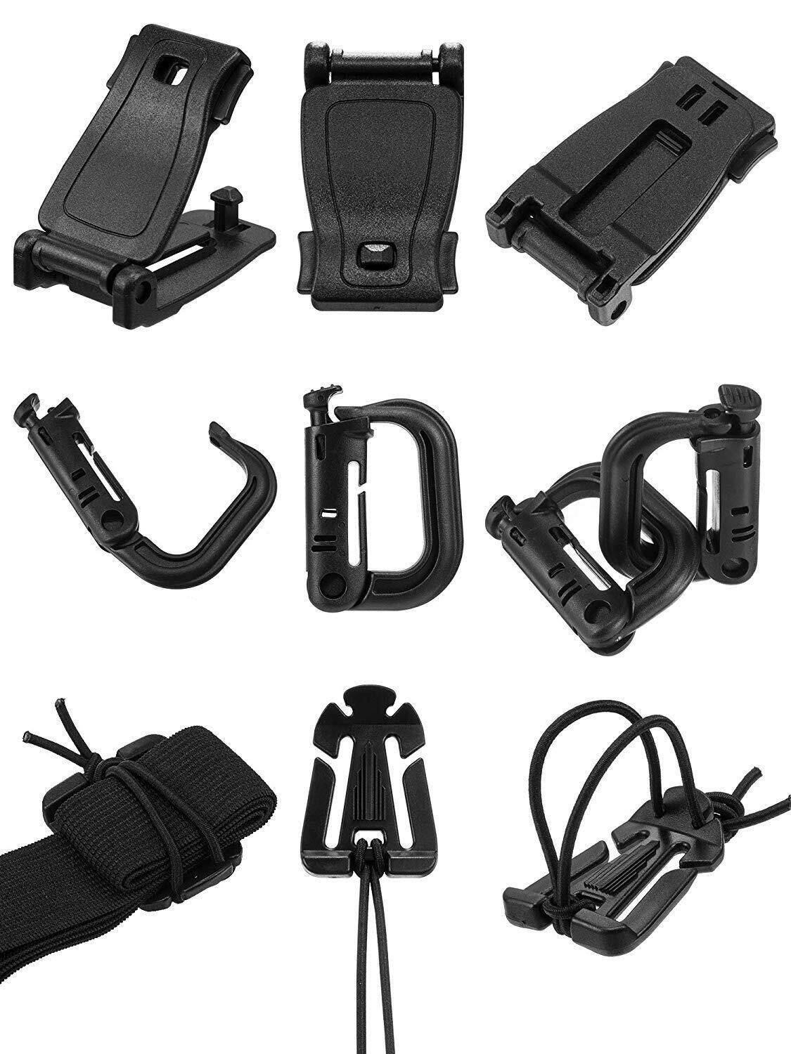 耐久性高いウェビングクリップ ウェビングクリップはモールシステム、バックパックなどに他のポーチなどを簡単にコネクトのに便利グッズです。モール対応の二つバッグを簡単に接続でき、見た目もスマートで、持ち運びには超便利です。耐熱、耐衝撃性に優れ、錆びることも無く、耐久性アップ。