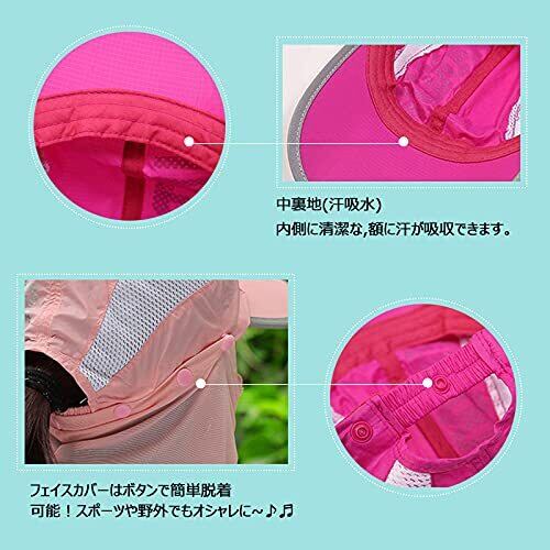 日よけ帽子 息苦しくないUVフェイスカバー UVカットフェイスカバー ネックカバー 折り畳み 日焼け防止帽子 紫外線対策 レディース キャップ ゴルフ フェイスカバー 付き (ライトピンク)